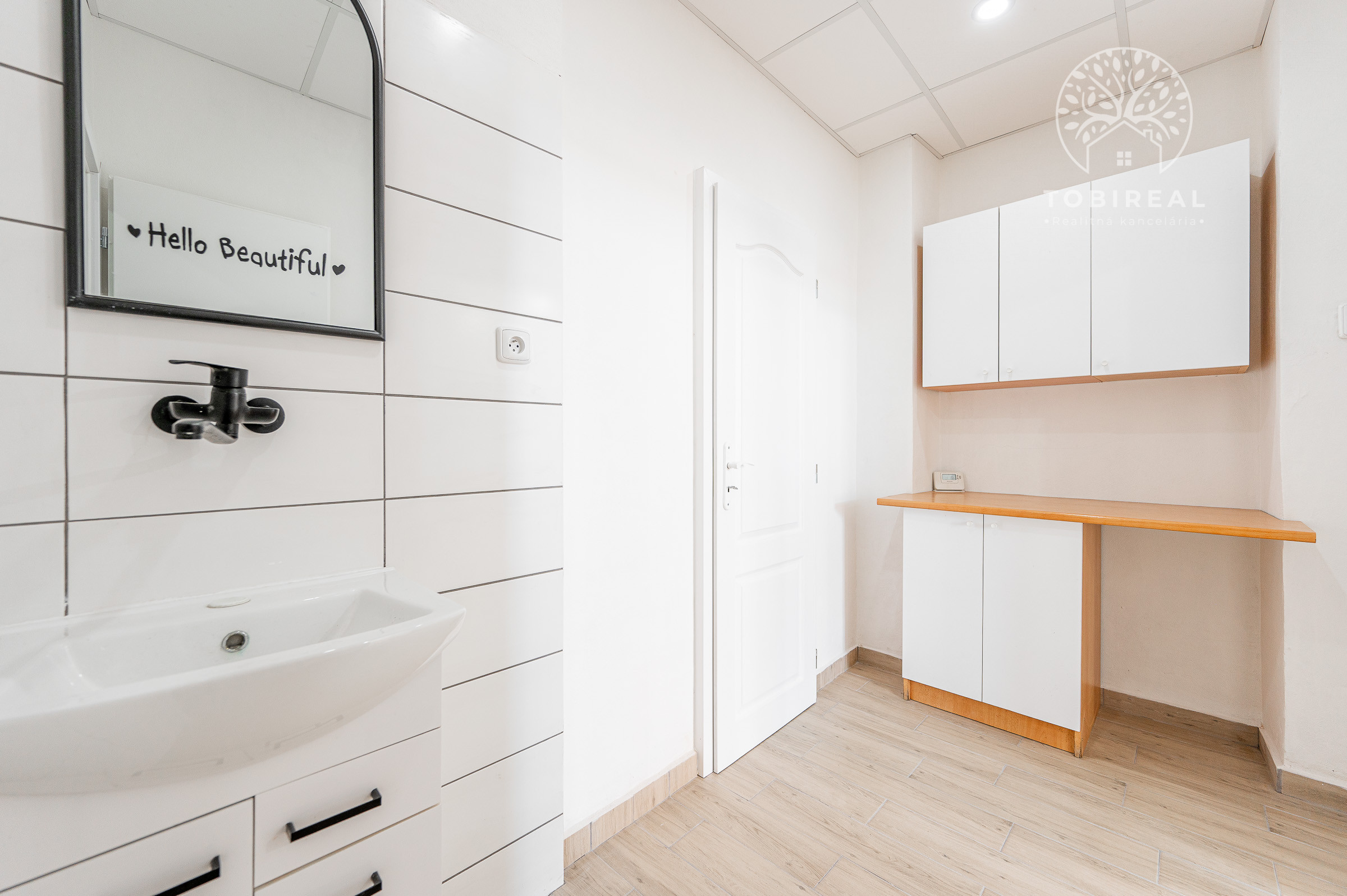 Hneď na začiatok treba zdôrazniť plnú vybavenosť priestorov a jeho skutočne dobré dispozične riešenie spojené s výmerou 114m2. Kancelárie chráni kamerový a zabezpečovací systém (alarm). Optický internet je zabezpečený od spoločnosti Antik.