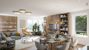 Cena 3 izbového bytu s predzáhradkou v tomto projekte je 384 343 € s DPH.