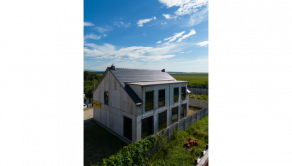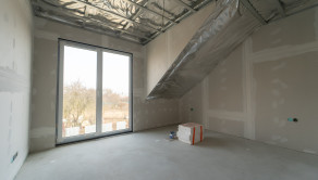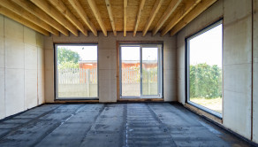 Dvojpodlažný rodinný dom o rozlohe 120 m2 je postavený z MgO magnézium dosky. Tento materiál je známy svojimi skvelými tepelnoizolačnými vlastnosťami, vďaka ktorým je dom nízkoenergetický a teda veľmi ekonomický. MgO magnézium doska je tiež nehorľavý materiál, čo pridáva domu na bezpečnosti a jeho jedinečnosti. Okna v dome sú plastové a dvere hliníkové.