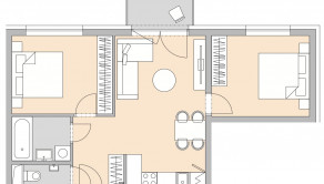 Cena 3 izbového bytu sa v tomto bytovom projekte pohybuje v závislosti od podlažia, a to od 170 000 € do 180 000 €. Byt pozostáva z presvetlenej dennej časti, ktorú tvorí kuchyňa prepojená s obývačkou, dvoch samostatných spálni, priestrannej vstupnej chodby, kúpeľne a samostatnej toalety s umývadielkom. Nesmie chýbať balkón s rozlohou viac ako 3 m2.