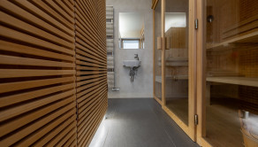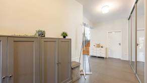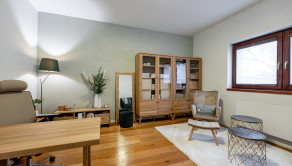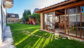 Luxus tohto rodinného domu je podčiarknutý vlastným wellness s východom do záhrady. V tomto raji oddychu nájdete bazén s protiprúdom a masážnou hlavicou či fínsku saunu.