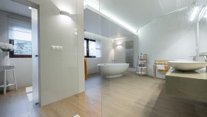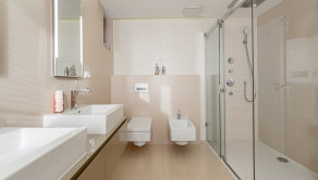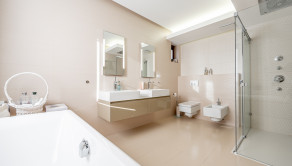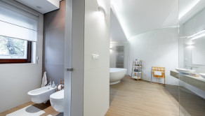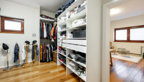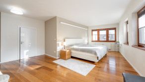 Hlavná spálňa s balkónom a vlastným priestranným šatníkom s kúpeľnou, v ktorej nájdeme walk-in sprchový kút či toaletu ponúka dostatočné súkromie.