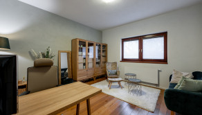 Vďaka vysokým stropom je v obývacej izbe zabezpečená celodenná svetlosť. Večernú romantiku Vám privodí krb, ktorý je súčasťou dennej časti.