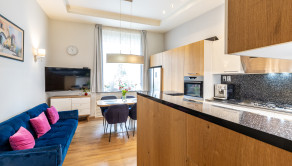 Nehnuteľnosť je zrekonštruovaná – nové elektrické rozvody, moderná kuchyňa, kúpeľňa a toaleta, no zároveň si zachováva svoj osobitý klasický štýl s jemným moderným nádychom.