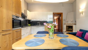 Kuchyňa je kompletne vybavená vstavanými spotrebičmi – umývačkou riadu, kombinovanou chladničkou s mrazničkou, mikrovlnnou rúrou, plynovou varnou doskou, elektrickou rúrou a digestorom.