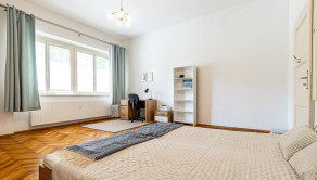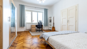 V celom byte sú drevené okná s trojsklom a v interiéri sa nachádzajú nádherné drevené parkety, ktoré spolu s vysokými stropmi (320cm) a veľkorysou dispozíciou vytvárajú pocit priestoru, vzdušnosti a elegancie. Interiér je príjemne presvetlený vďaka veľkým oknám a dvojkrídlovým dverám, ktoré sú prítomné v každej miestnosti a podčiarkujú autentický charakter bytu. Tento jedinečný priestor dýcha históriou – byt sa nachádza v tehlovom dome z roku 1931, čo mu dodáva neopakovateľnú atmosféru a šarm medzivojnovej architektúry. Orientácia miestností je na dve strany, a to dve samostatné izby - juh a obývacia izba, kuchyňa - sever.