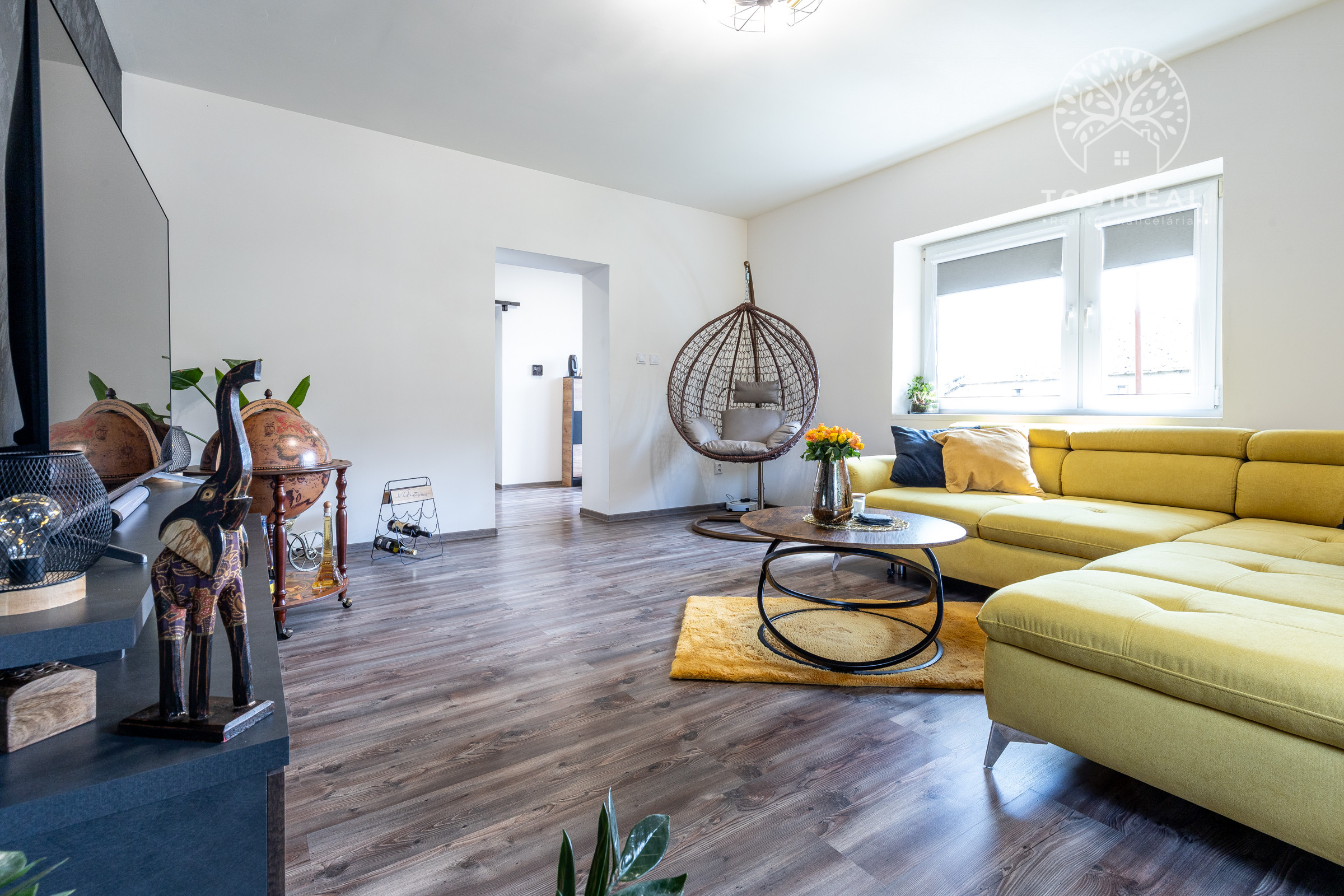 Dom bol postavený v roku 1968 a ponúka veľkorysú úžitkovú plochu 207 m². Je čiastočne podpivničený a jeho praktické dispozičné riešenie zahŕňa štyri samostatné izby, dve kúpeľne s toaletou, priestrannú kuchyňu so špajzou a technickú miestnosť. Okná v celom dome sú plastové a podlahy kvalitné laminátové v kombinácii s dlažbou. V kuchyni a kúpeľniach určite oceníte komfort podlahového kúrenia.