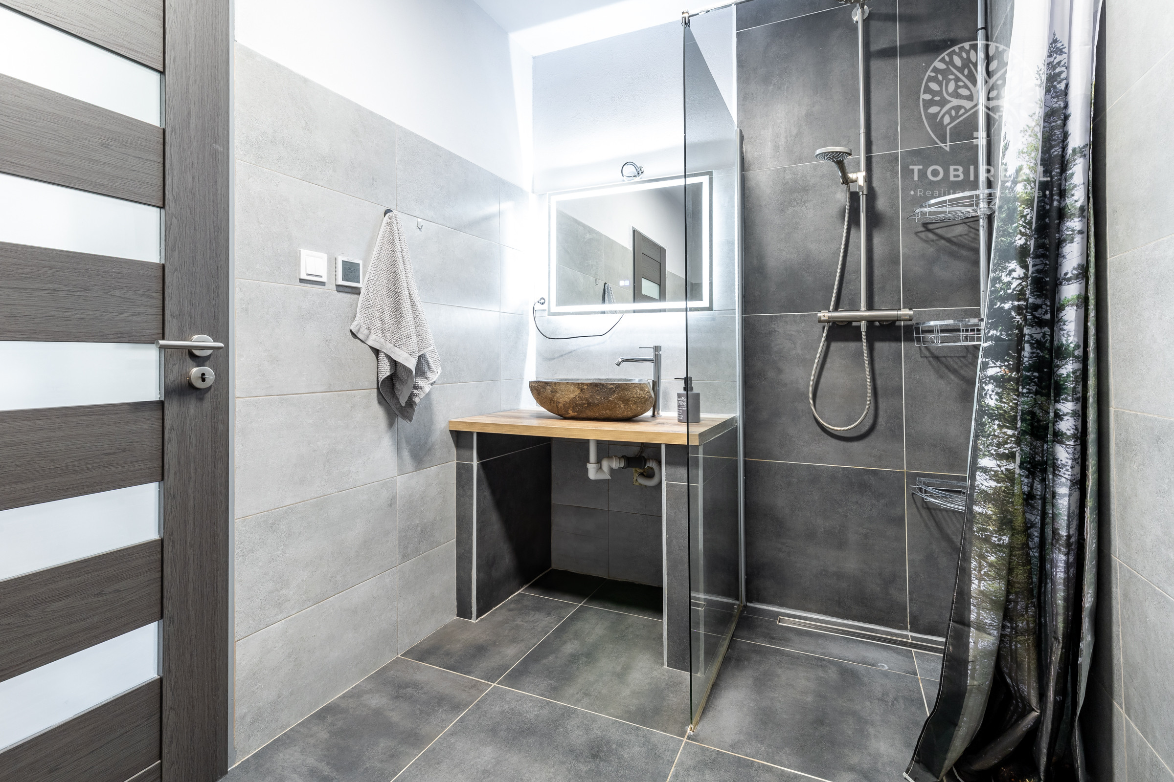 - kúpeľňa so sprchovacím kútom a toaletou,