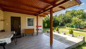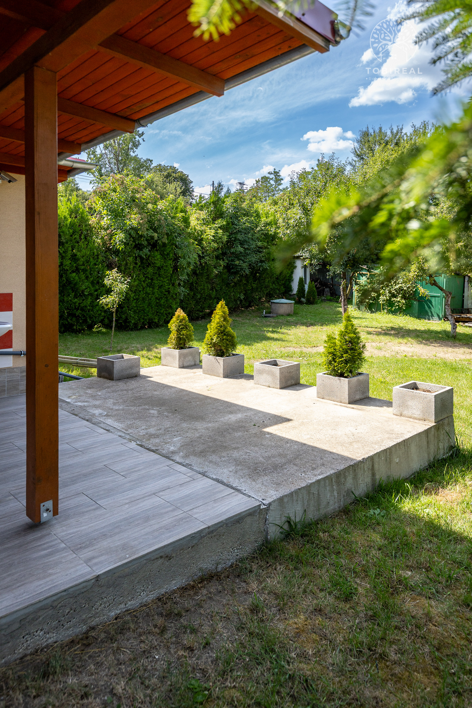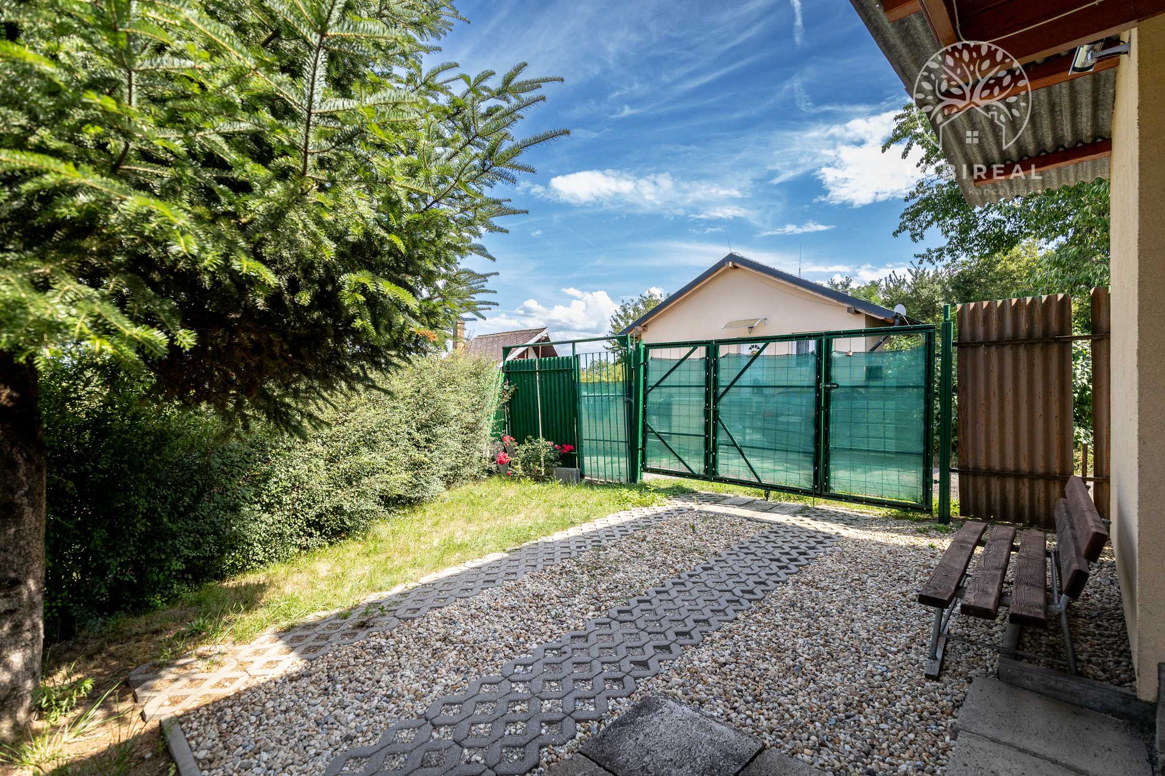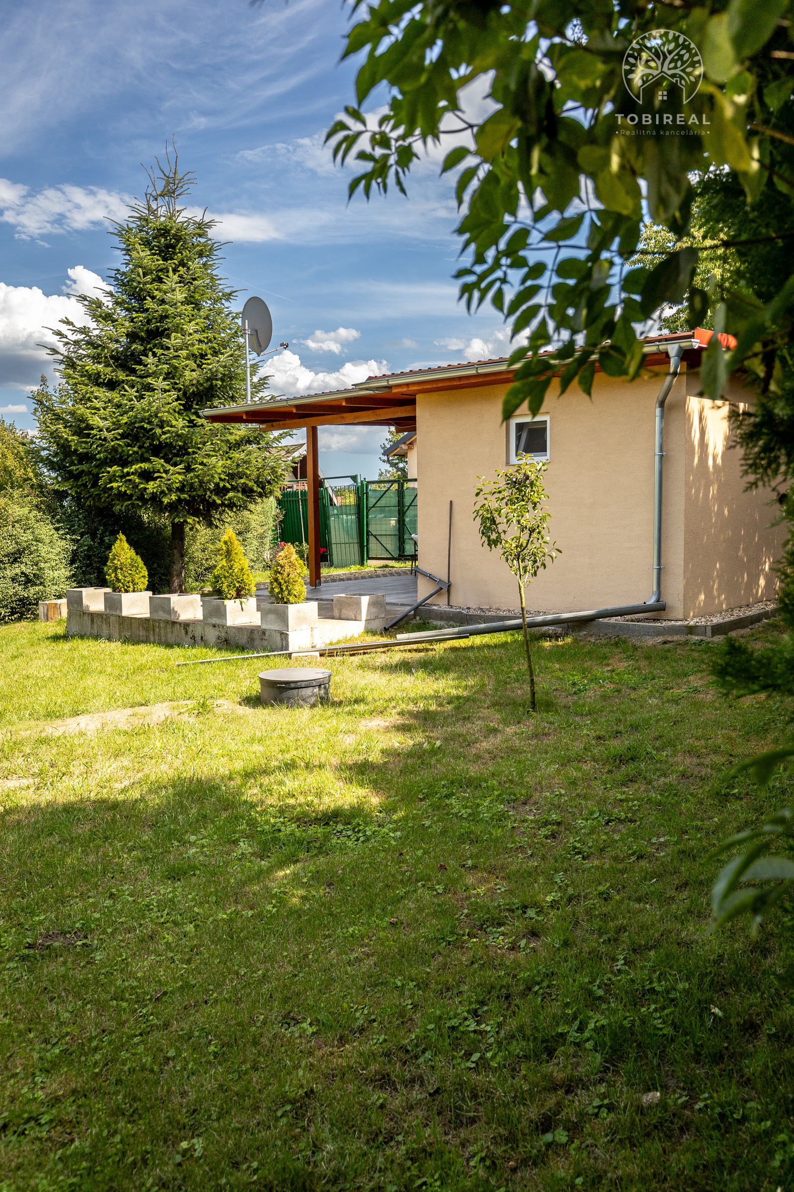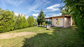 Tento kontajnerový dom s murovanou prístavbou (Porfix) sa nachádza na rovinatom pozemku s výmerou 379 m², úžitková plocha je 30 m² a dispozične pozostáva zo spálne, kuchyne a kúpeľne. Súčasťou nehnuteľnosti je aj priestranná terasa s výmerou 16 m². Pozemok je obklopený okrasnými stromčekmi a množstvom zelene, vďaka čomu pôsobí veľmi príjemne a ponúka dokonalé súkromie a relax v tichom prostredí. Celý areál vrátane chaty je kompletne oplotený.