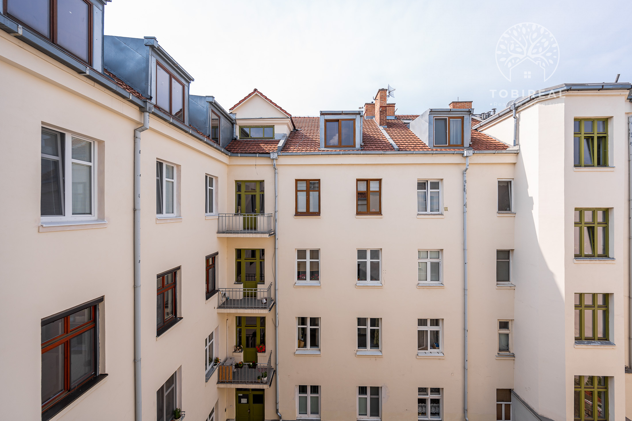 Azda najväčšou devízou tohto bytu je jeho výnimočné umiestnenie – nachádza sa vo dvore, a to z oboch strán. Vďaka tomu ponúka jedinečný pokoj, absolútne súkromie a príjemnú atmosféru oddelenú od mestského ruchu.