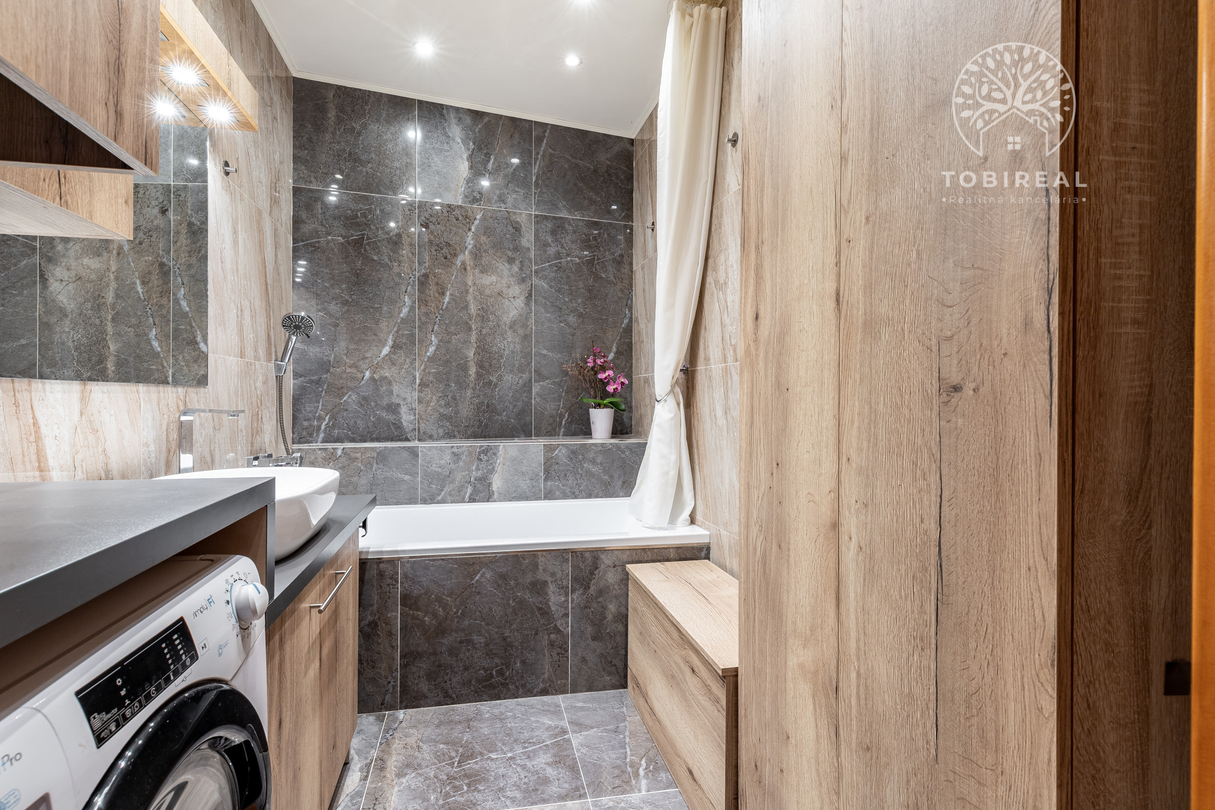 V celom byte sú plastové okná a plávajúca podlaha v kombinácií s dlažbou. Byt je vybavený klimatizáciou a taktiež sa v ňom nachádzajú dva samostatné šatníky, ktoré zabezpečujú dostatok úložného priestoru.