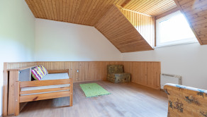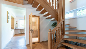 Tepelný komfort zaisťuje moderná hypokaustová pec s elektronickým riadením v kombinácii s elektrickým kúrením prostredníctvom akumulačných a konvektorových radiátorov. Interiér zaujme masívnym dubovým schodiskom, ktoré vedie na galériu s balkónom a výhľadom na celý pozemok. Komfort dopĺňajú elektrické exteriérové žalúzie, klimatizácia a zabezpečovací systém s alarmom.