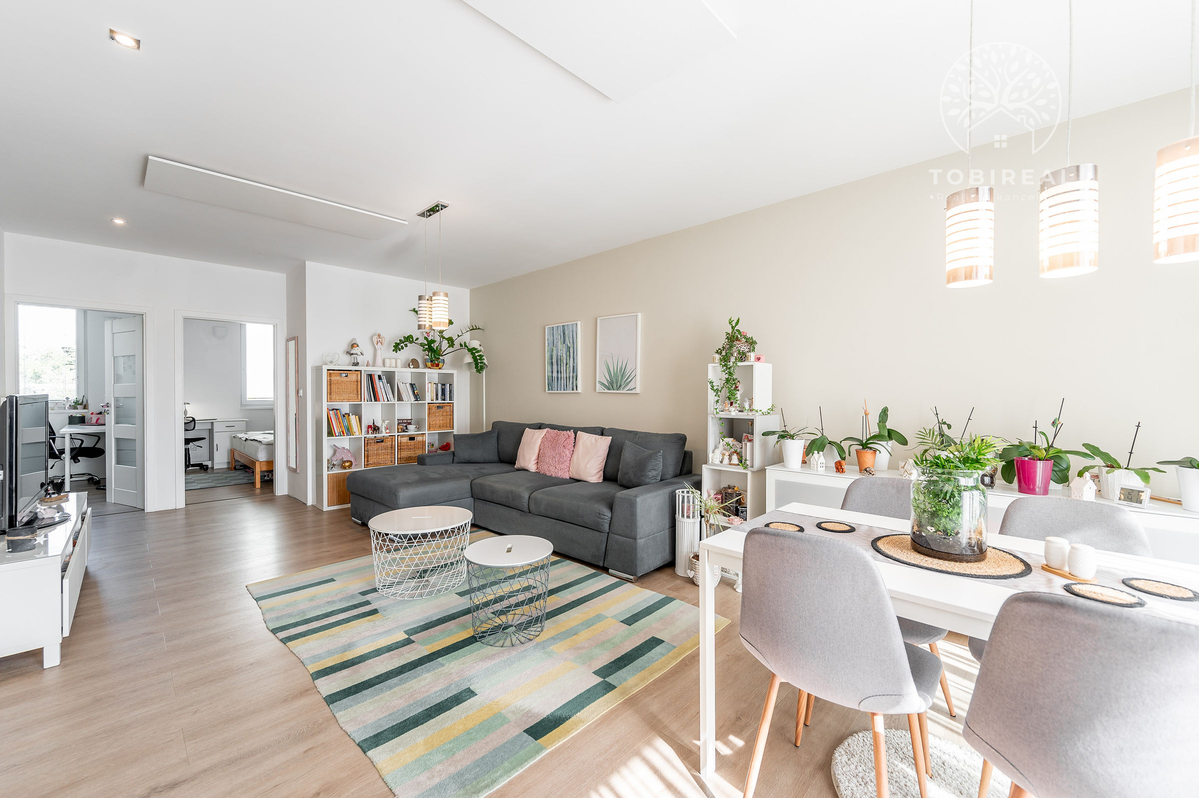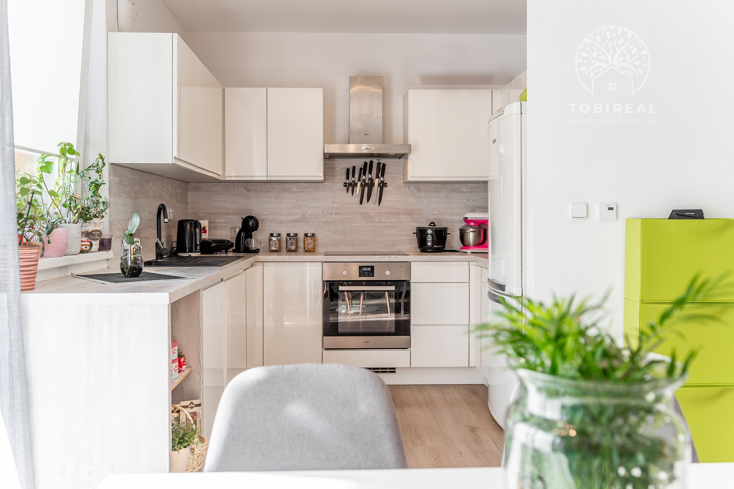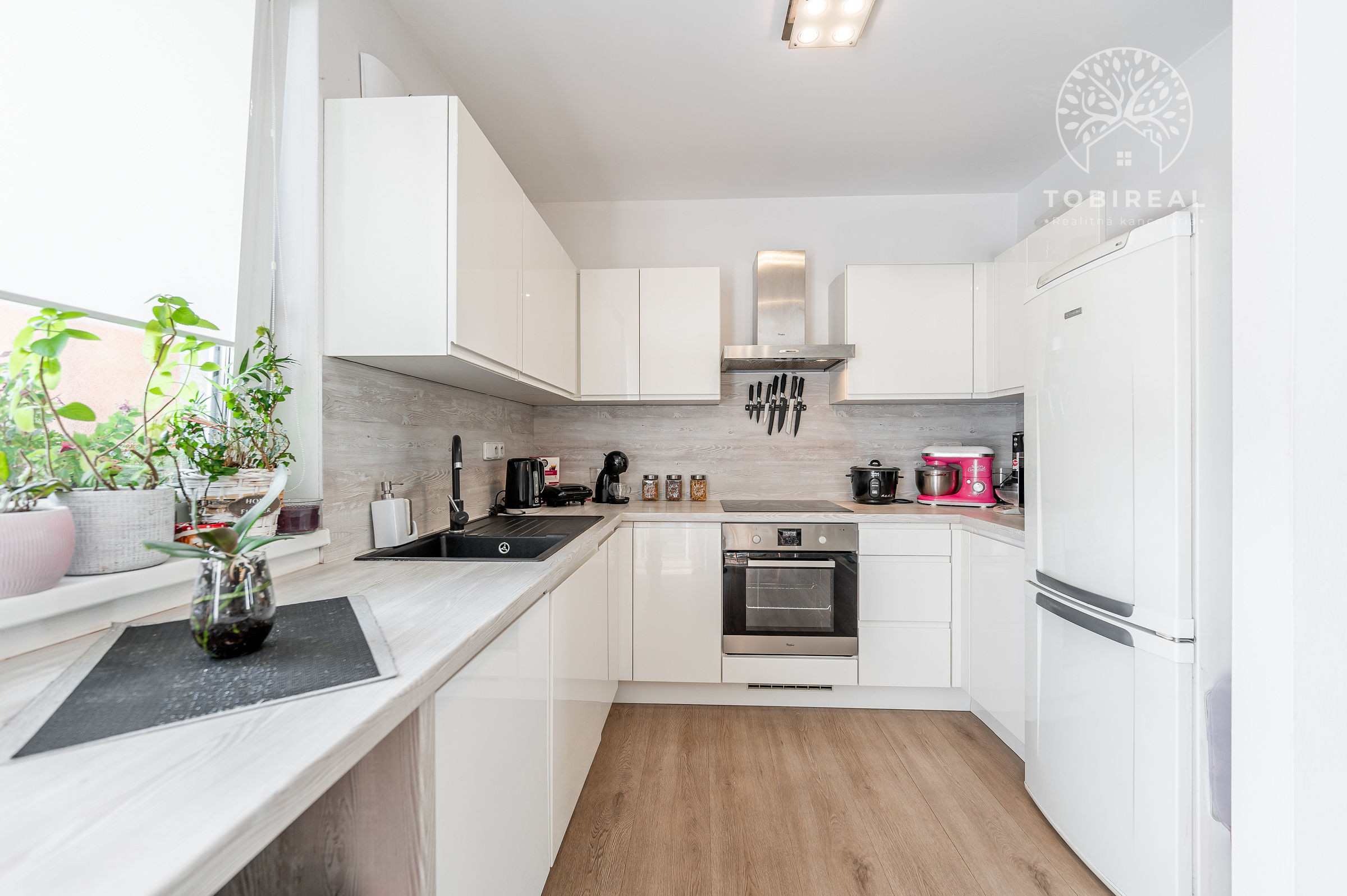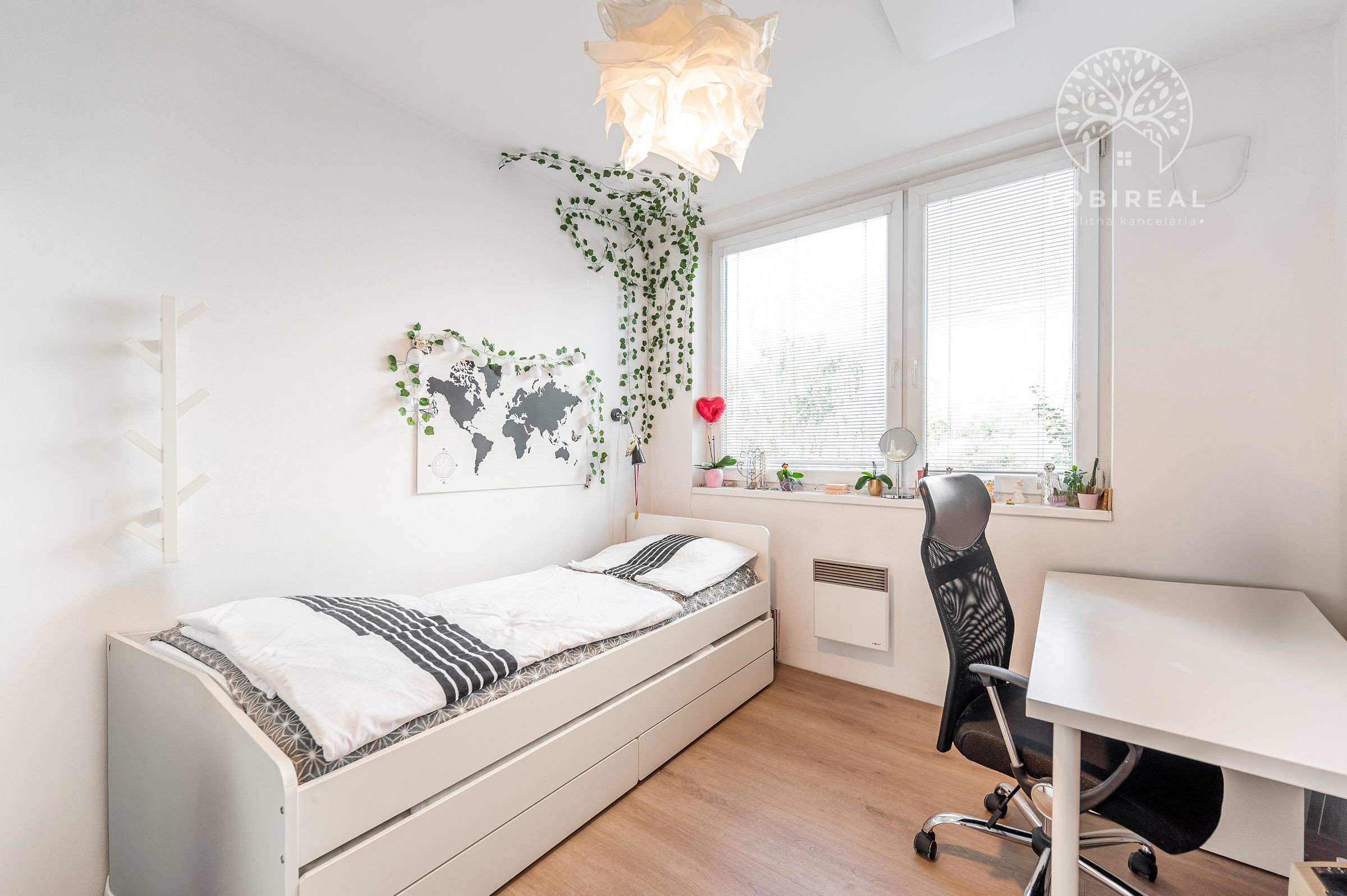 Byt s úžitkovou plochou 65 m² sa nachádza na 2. poschodí tehlového a zatepleného bytového domu s výťahom. Je orientovaný na sever a juh, čo zabezpečuje príjemné presvetlenie počas celého dňa.