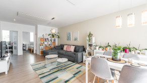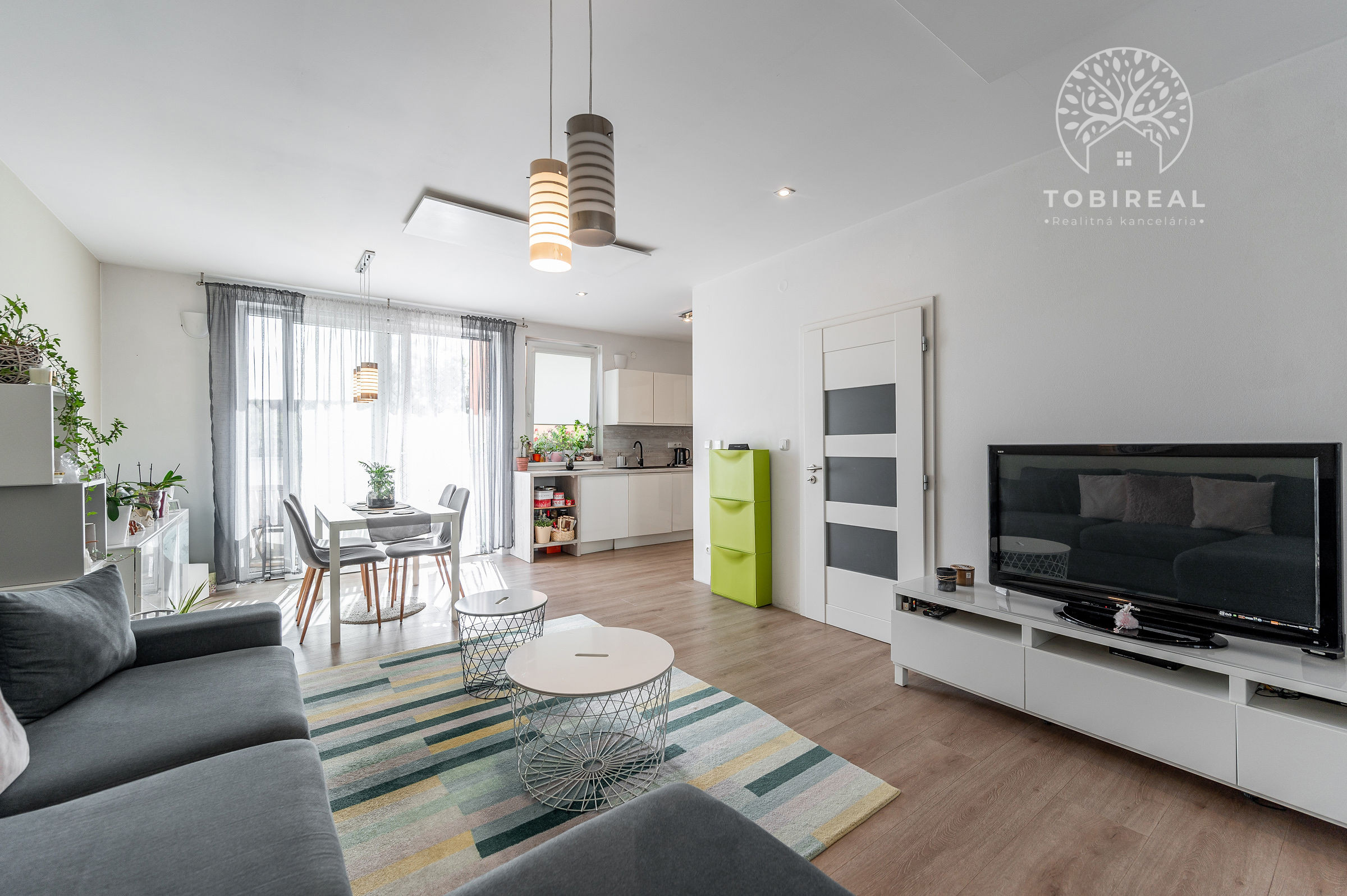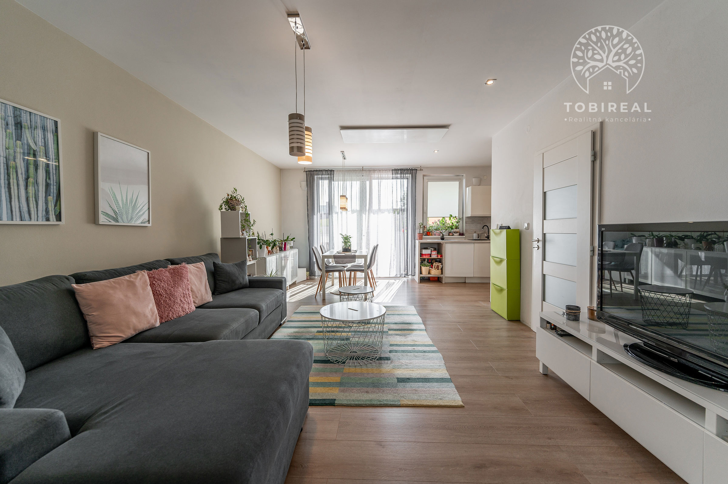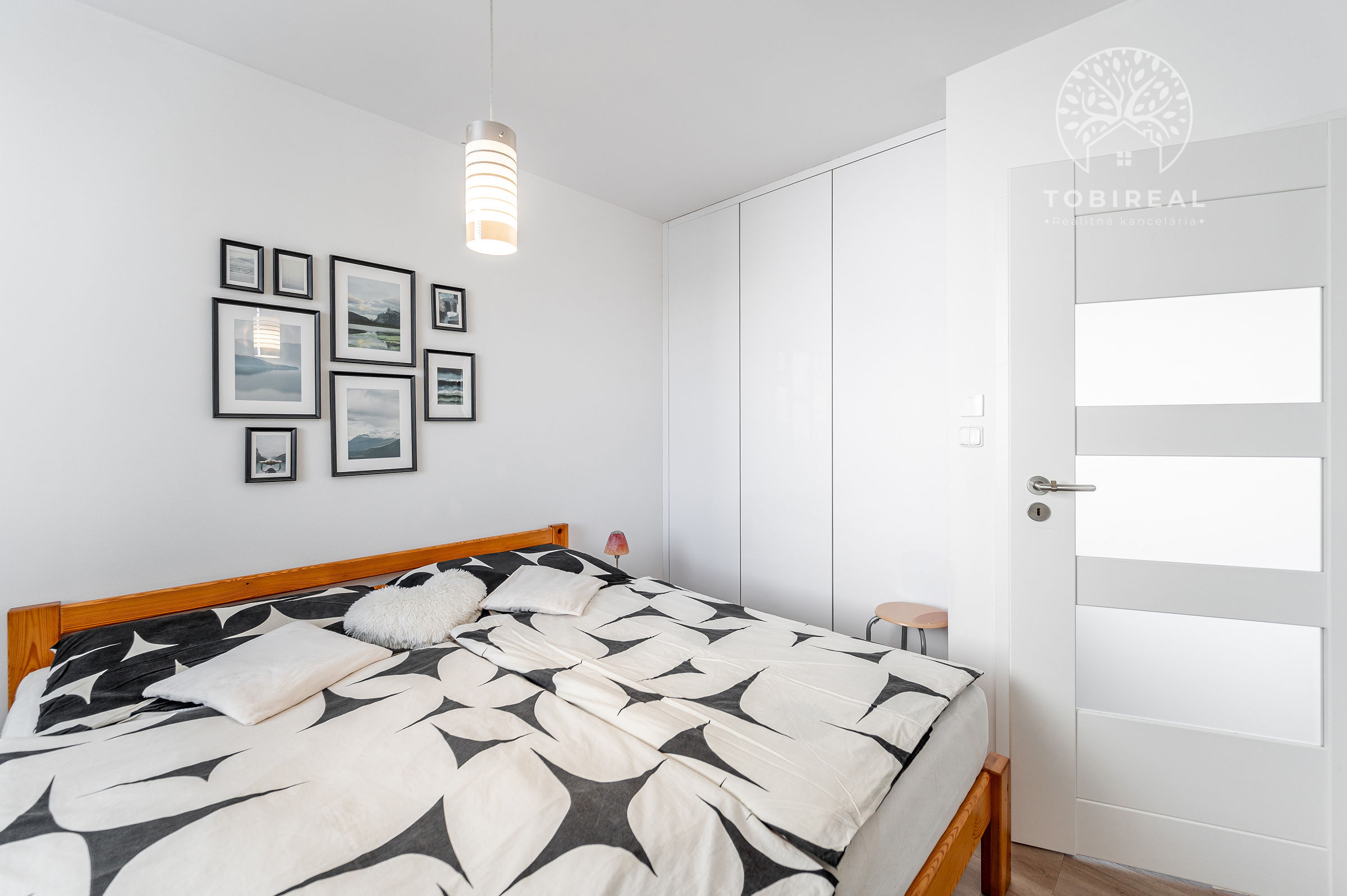 Byt s úžitkovou plochou 65 m² sa nachádza na 2. poschodí tehlového a zatepleného bytového domu s výťahom. Je orientovaný na sever a juh, čo zabezpečuje príjemné presvetlenie počas celého dňa.