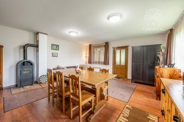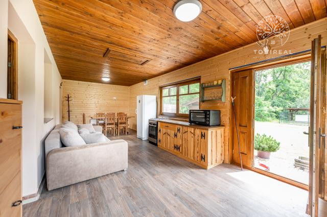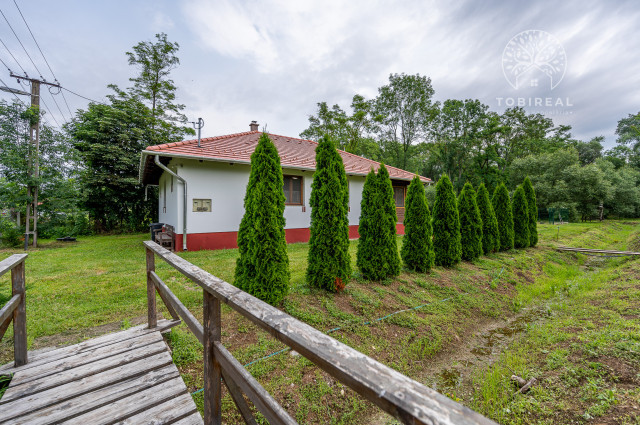 Dom, ktorý ponúkame na predaj, bol postavený v roku 2017 a predáva sa spolu so 120 árovým pozemkom, ktorého súčasťou sú aj lesy v jeho zadnej časti (4 000 m2). Pozemok okolo domu (1 400 m2) je plný pekne udržiavanej zelene, ktorá dotvára celkovú atmosféru miesta. Bungalov má podlahovú plochu 102 m2 a prešiel kompletnou rekonštrukciou.