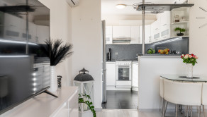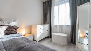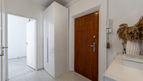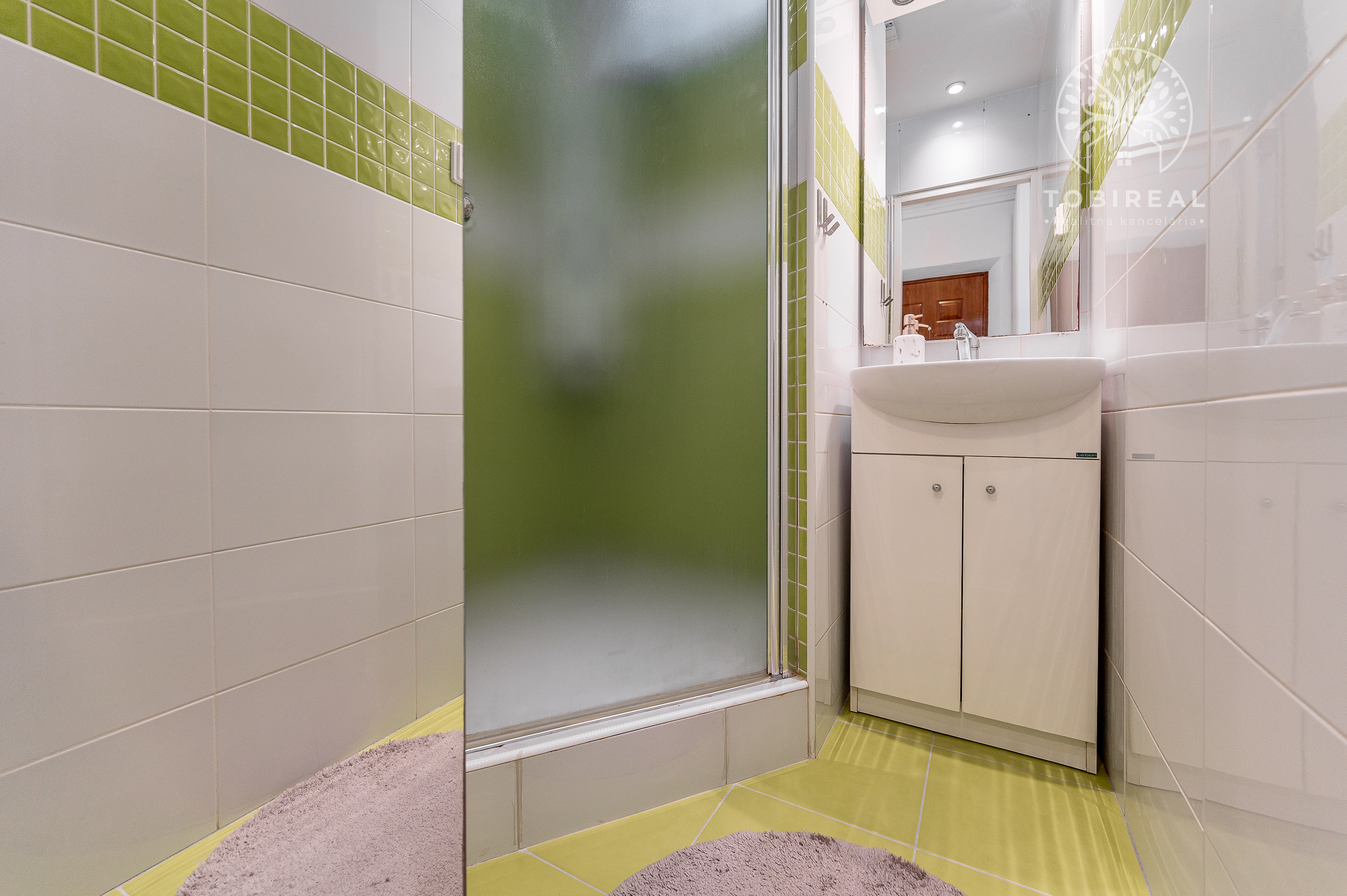 Interiér je vybavený plastovými oknami a plávajúcou podlahou kombinovanou s dlažbou. V kuchyni sa nachádza moderná kuchynská linka so zabudovanými spotrebičmi, vrátane umývačky riadu, digestora, sporáka, elektrickej rúry a mikrovlnky. Kúpeľňa je vybavená sprchovým kútom, toaleta je samostatná. Pre bezpečnosť je byt vybavený kvalitnými bezpečnostnými dverami a bonusom je klimatizácia.