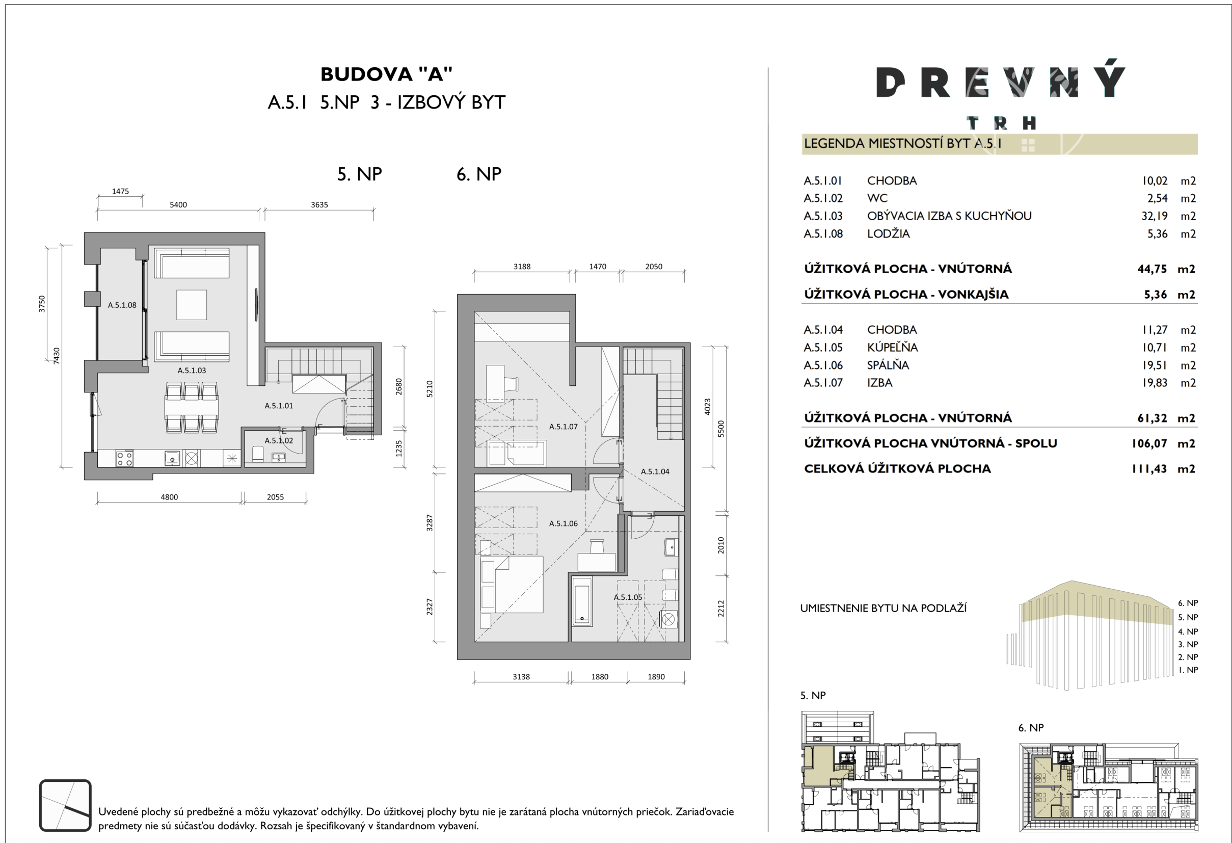 Na predaj je mezonet s rozlohou 111 m² a loggiou s celkovou rozlohou viac ako 5 m², nachádzajúci sa na 5. a 6. poschodí, s orientáciou na juh. Byt pozostáva z presvetlenej dennej časti, ktorú tvorí prepojená kuchyňa s obývačkou a s výstupom na priestrannú loggiu, spálne, izby, kúpeľne, samostatnej toalety, vstupnej chodby a šatníkom.