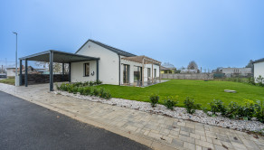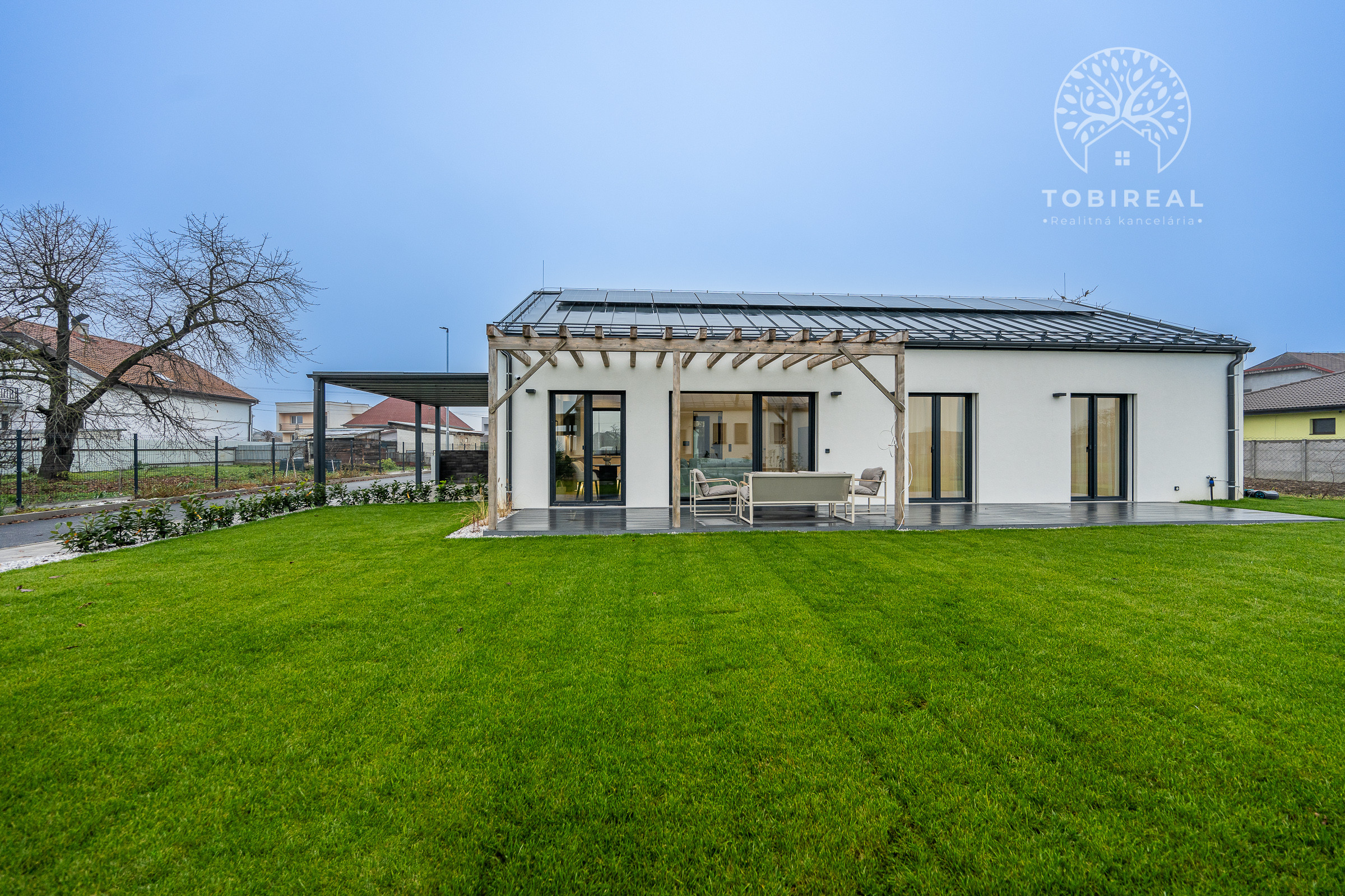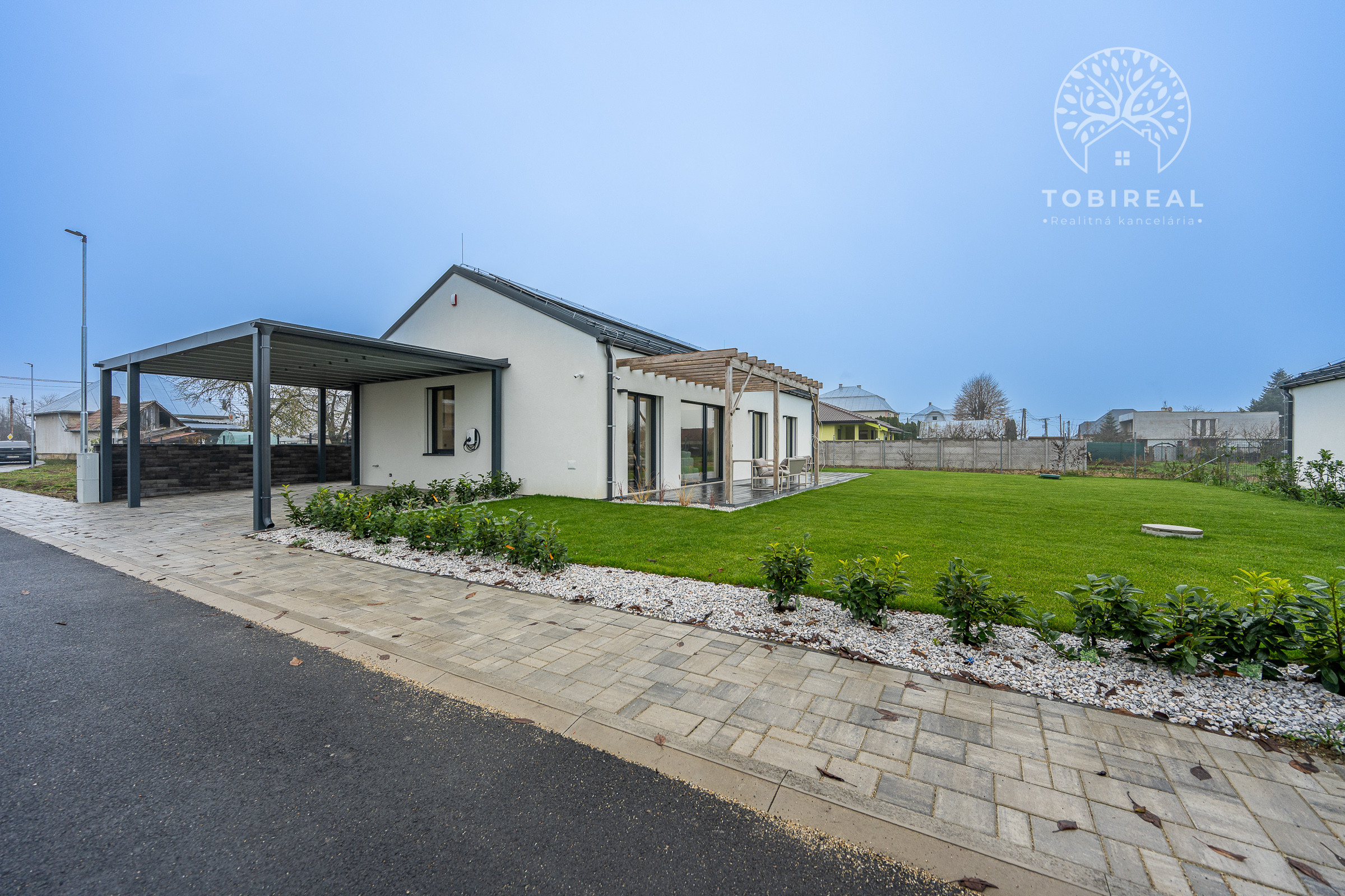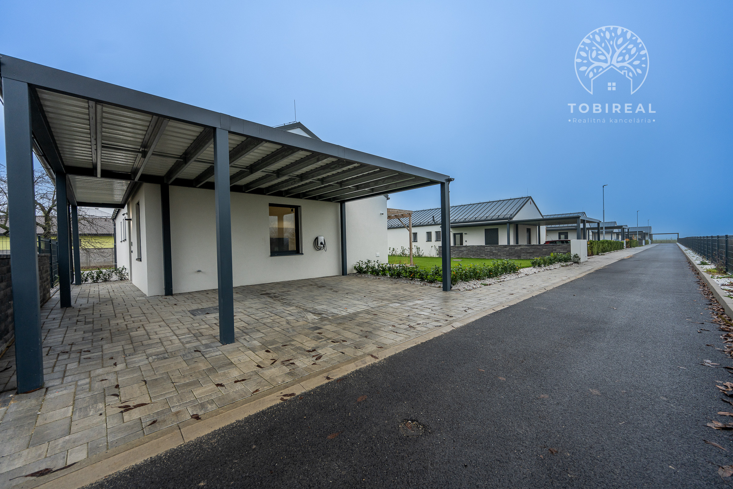 Ide o novostavbu bungalovu s 3 samostatnými spálňami, kuchyňou prepojenou s obývacou izbou, jedálňou a výstupom na terasu, kúpeľňou a toaletou. Dom je situovaný na rovinatom pozemku o rozlohe 519 m². Parkovanie pre dve vozidlá je k dispozícii hneď vedľa domu pod prístreškom.