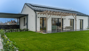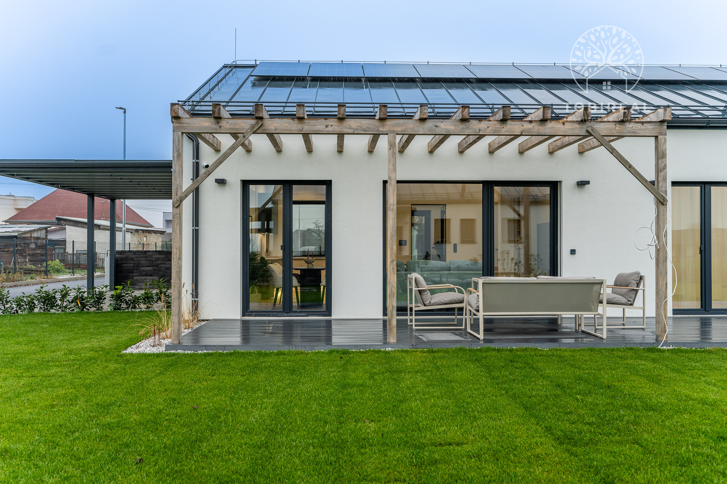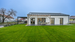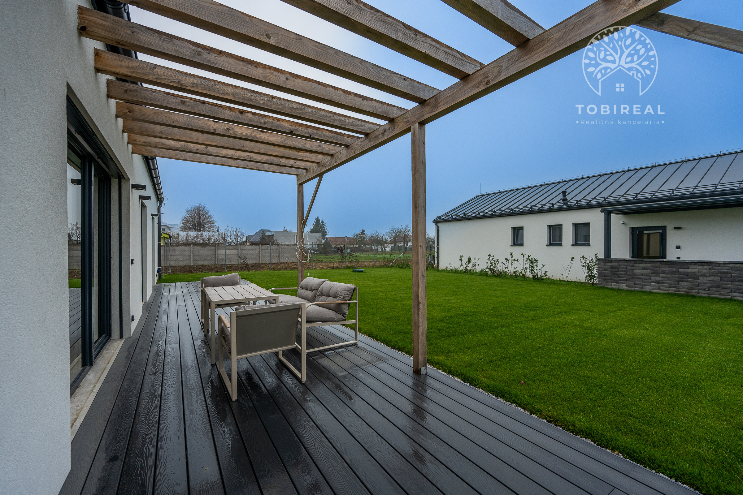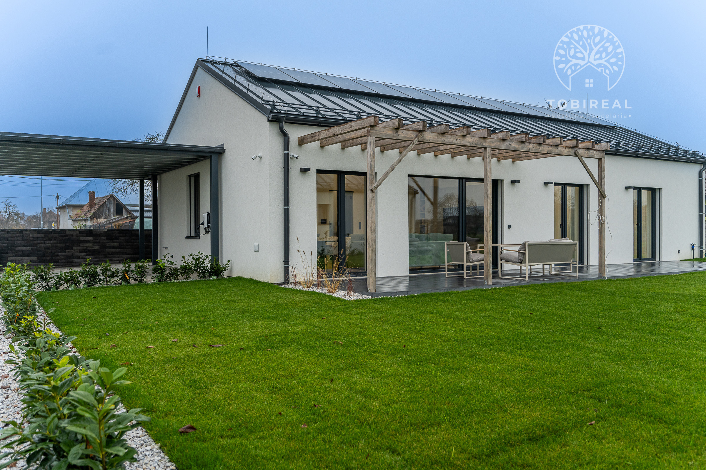 Ide o novostavbu bungalovu s 3 samostatnými spálňami, kuchyňou prepojenou s obývacou izbou, jedálňou a výstupom na terasu, kúpeľňou a toaletou. Dom je situovaný na rovinatom pozemku o rozlohe 519 m². Parkovanie pre dve vozidlá je k dispozícii hneď vedľa domu pod prístreškom.
