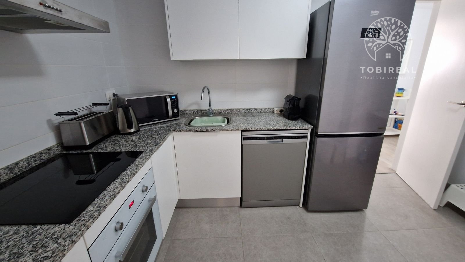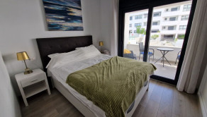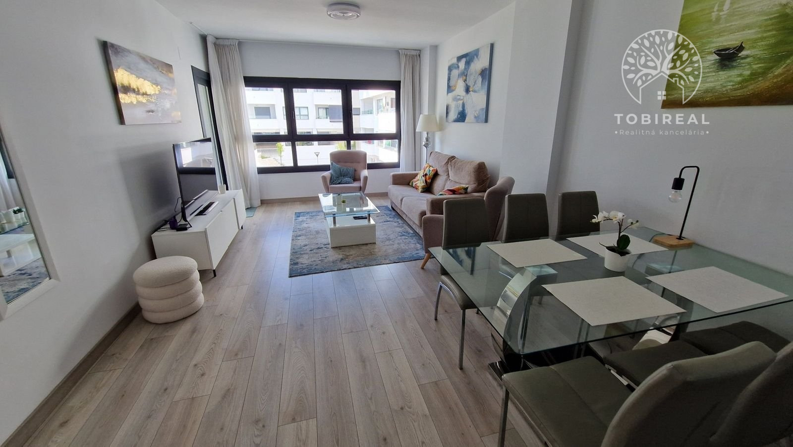Apartmán je orientovaný na juhozápad, nachádza sa na prvom poschodí komplexu a ponúka 2 spálne, 2 kúpeľne, priestrannú obývaciu izbu prepojenú s modernou kuchyňou, technickú miestnosť a terasu s výhľadom na bazén a detské ihrisko. Hlavná spálňa má vlastnú kúpeľňu so sprchovacím kútom, rodinná kúpeľňa disponuje vaňou aj sprchovacím kútom.