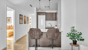 Interiér pozostáva z priestrannej obývacej izby s jedálenskou časťou, plne vybavenej modernej kuchyne a dvoch komfortných spální. Súčasťou je aj parkovacie miesto a možnosť nabíjania elektromobilu.