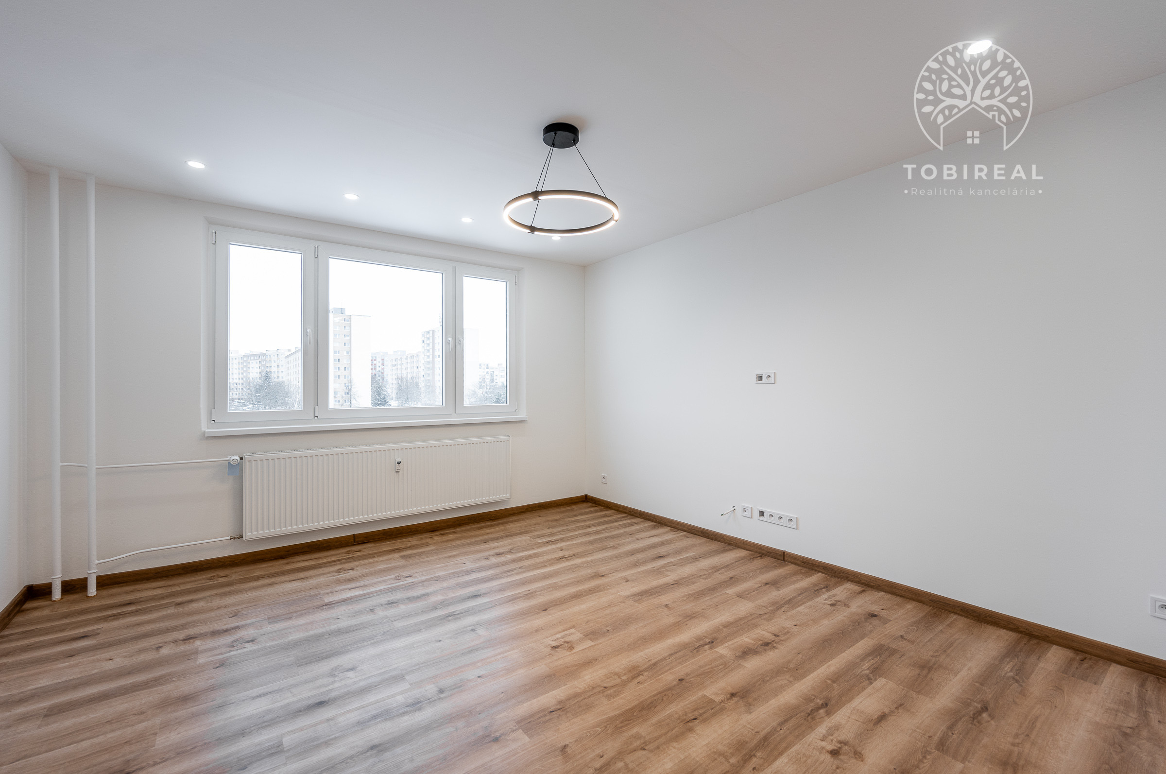 Realitná kancelária TOBI Real Vám ponúka na predaj novo zrekonštruovaný 3 izbový byt na sídlisku KVP, ulica Čordákova, na 8. poschodí, kde pohodlný prístup zabezpečujú dva výťahy – osobný aj nákladný. Byt má výmeru 64 m² a vďaka orientácii východ – západ je príjemne presvetlený; samozrejmosťou je aj pivnica a praktická loggia.