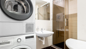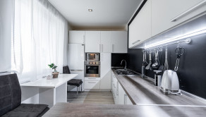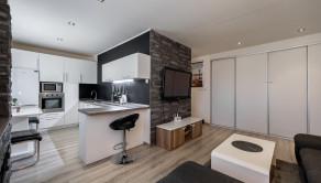 Kuchynská linka je vybavená plynovou varnou doskou, el. rúrou, chladničkou s mrazničkou a mikrovlnkou. Rovnako aj zvyšok bytu je vybavený všetkým potrebným, čo človek potrebuje k bývaniu. V obývačke sa nachádza gauč a TV, v spálni je manželská posteľ a vstavaná skriňa. V kúpeľni je umiestnený sprchovací kút a k dispozícií je aj práčka a sušička. Toaleta je samostatne.