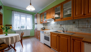 Druhé podlažie tvoria štyri izby, kuchyňa so špajzou, samostatná toaleta a kúpeľňa s vaňou. Obe kuchyne sú plne vybavené spotrebičmi: umývačka riadu, chladnička, mraznička, digestor, sporák, elektrická rúra, indukčná varná doska a zabudovaná mikrovlnka. Na pozemku nechýba ani vonkajšia letná kuchyňa. Dom sa predáva čiastočne zariadený.
