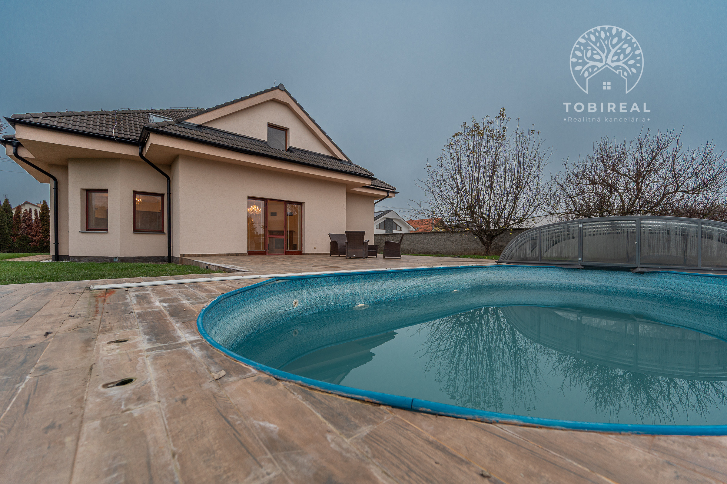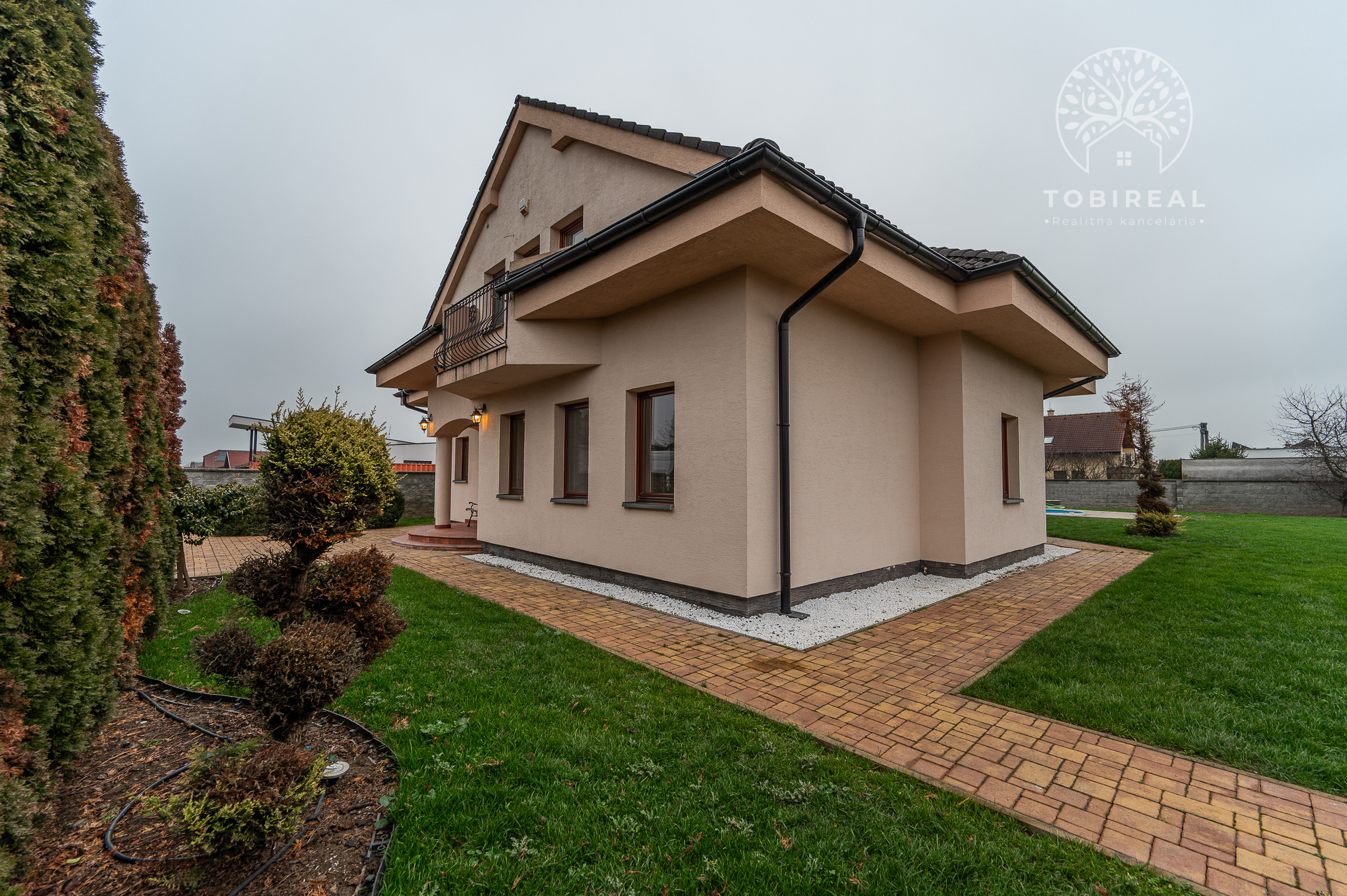 Rodinný dom je situovaný na rovinatom pozemku o výmere 640 m². Zastavaná plocha domu je 147 m², úžitková plocha predstavuje 240 m². Nehnuteľnosť disponuje balkónom, terasou a ponúka komfortné bývanie doplnené o bazén a saunu, ktoré vytvárajú ideálne zázemie pre oddych a relax.
