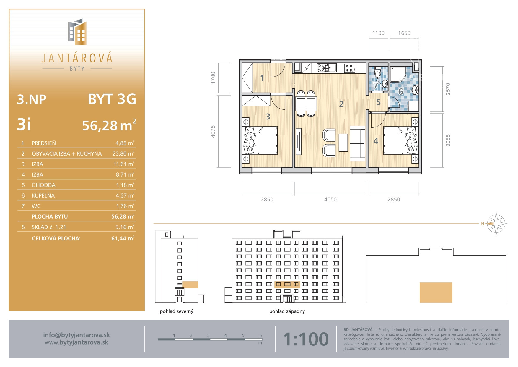 Ponúkame 3 izbový byt o rozlohe viac ako 56 m2, na 3. podlaží. Orientácia tohto bytu je na západ. Bytový dom kompletnej a rozsiahlej rekonštrukcií bude disponovať dvoma výťahmi.