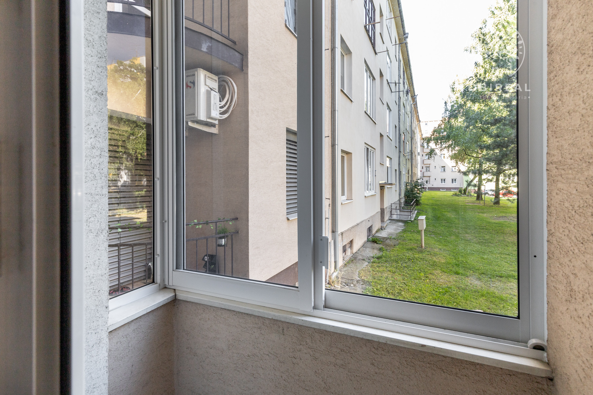 Balkón je zasklený systémom s možnosťou vetrania, má sieťku proti hmyzu a odoberateľné okná s poistkami. Bezpečnosť zvyšujú bezpečnostné dvere ADLO.