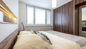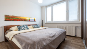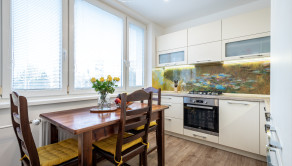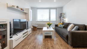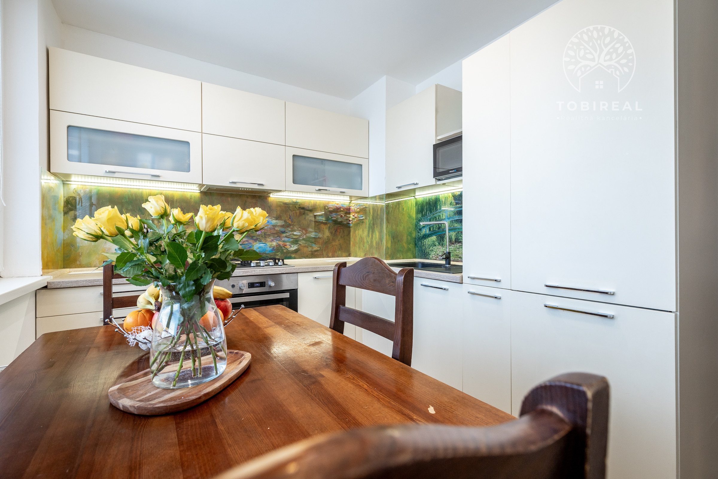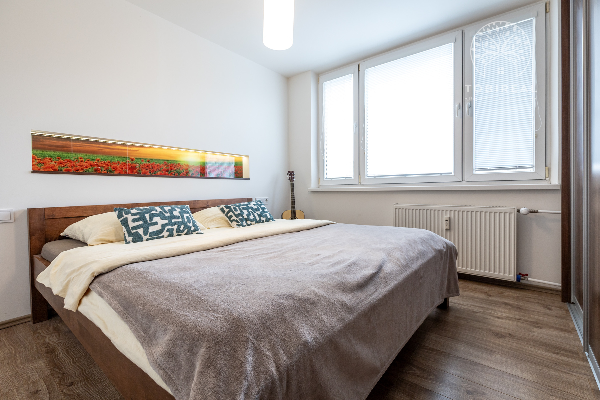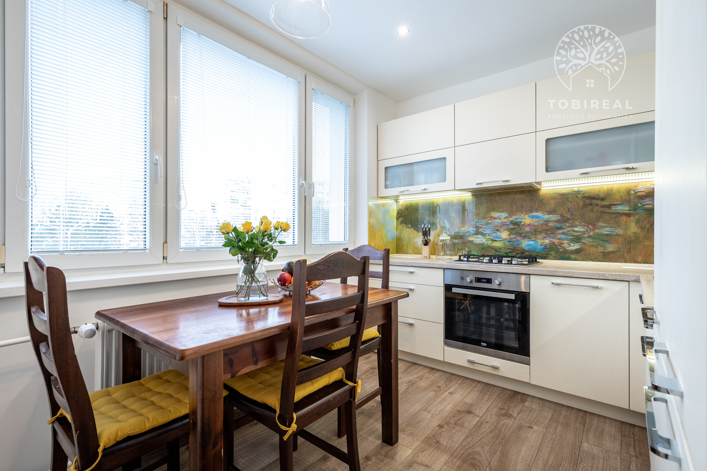 Byt sa nachádza na 2. poschodí zatepleného panelového bytového domu s dvomi výťahmi a má celkovú výmeru 65,49 m². Je po kompletnej rekonštrukcii a dispozične pozostáva zo vstupnej chodby, obývacej izby so vstupom na loggiu, dvoch samostatných izieb, kuchyne, kúpeľne s vaňou a sprchovacím kútom a oddelenej toalety. Kuchynská linka je vybavená spotrebičmi: umývačka riadu, chladnička, mraznička, digestor, sporák, elektrická rúra a mikrovlnná rúra. Praktický úložný priestor zabezpečujú vstavané skrine. K bytu prislúcha aj pivnica.