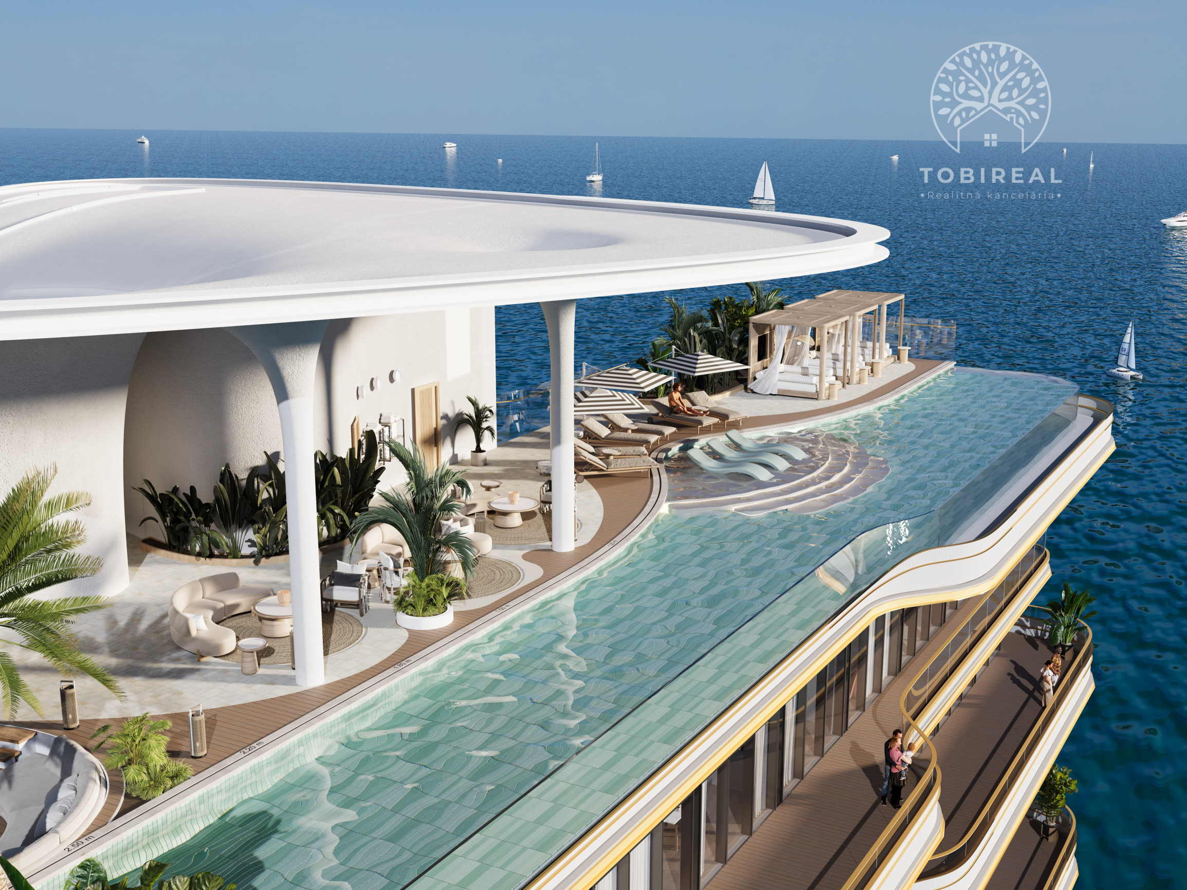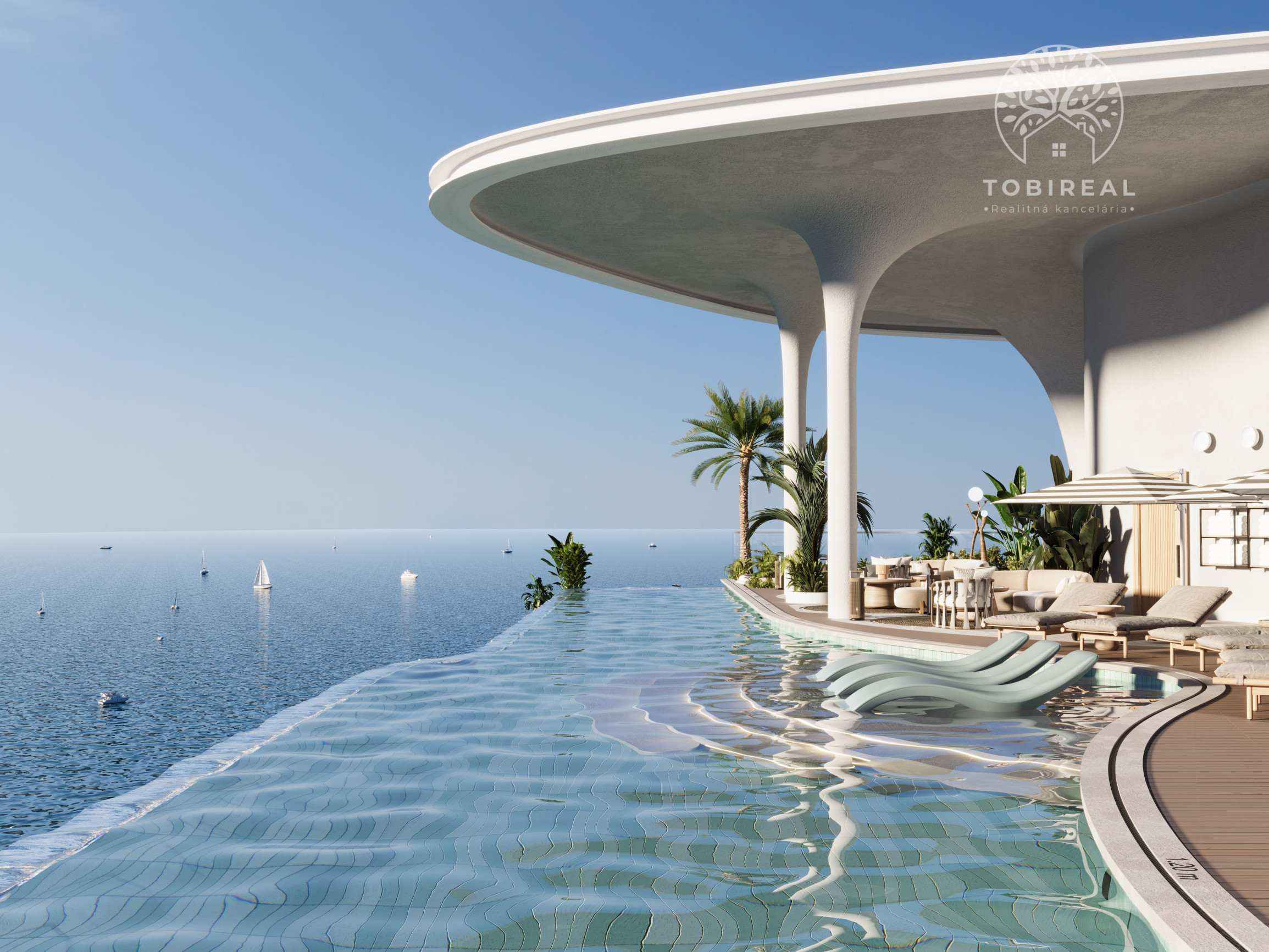 Dominantou projektu je strešný infinity bazén s nerušeným výhľadom na more a panorámu mesta, ktorý vytvára ideálne miesto na oddych a relax v absolútnom súkromí.