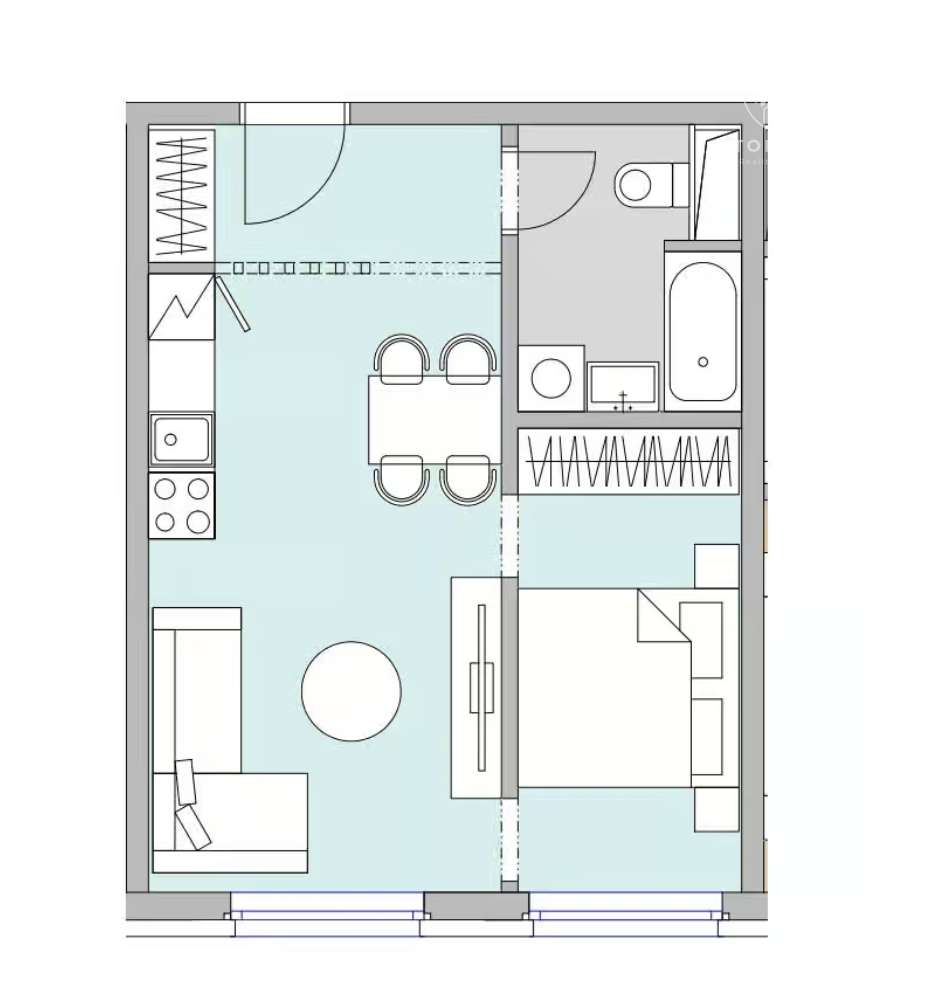Byt pozostáva z presvetlenej dennej časti, ktorú tvorí kuchyňa prepojená s obývačkou, samostatnej spálne, priestrannej vstupnej chodby a kúpeľne s toaletou a umývadlom. Nesmie chýbať balkón o výmere 3,31 m2.