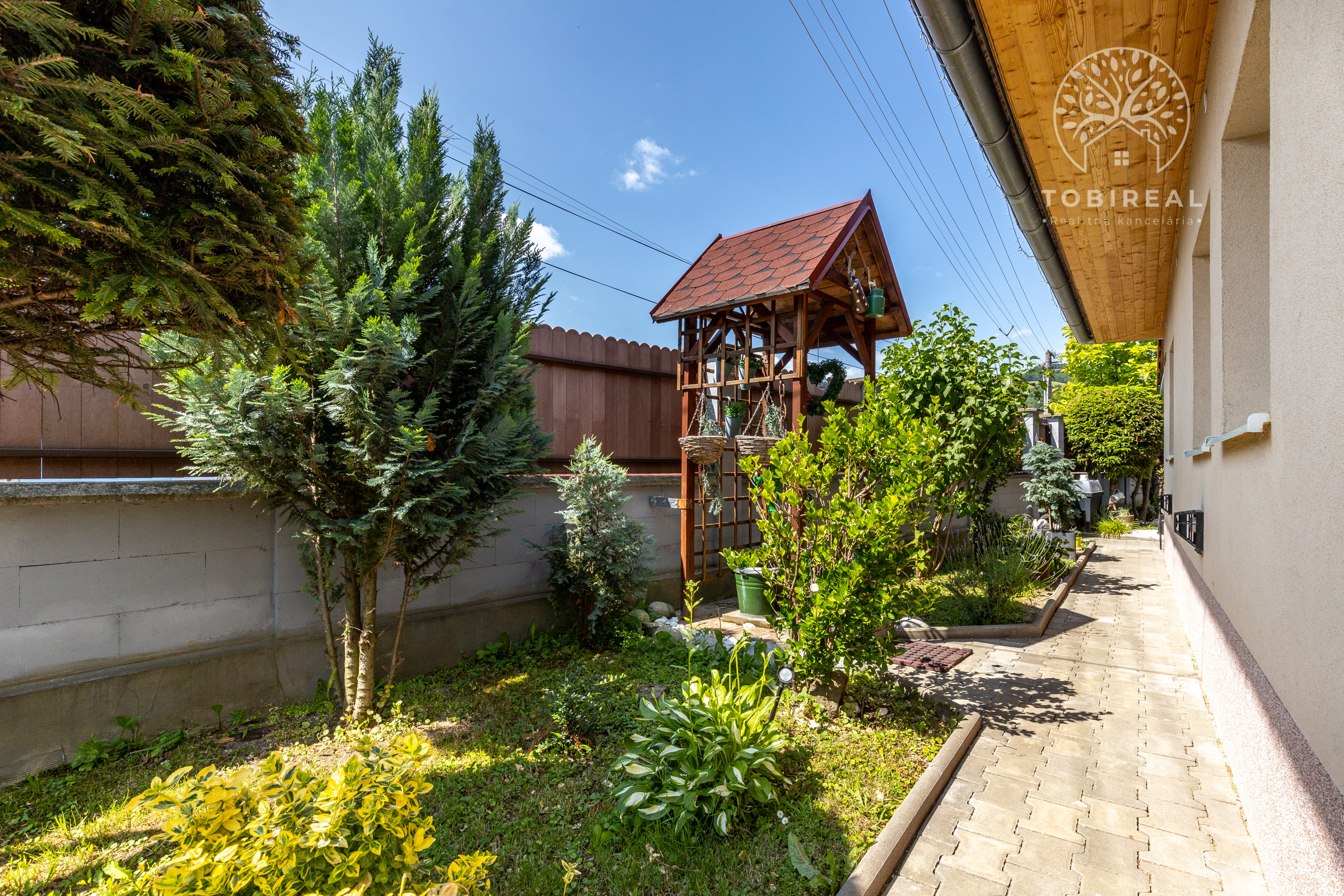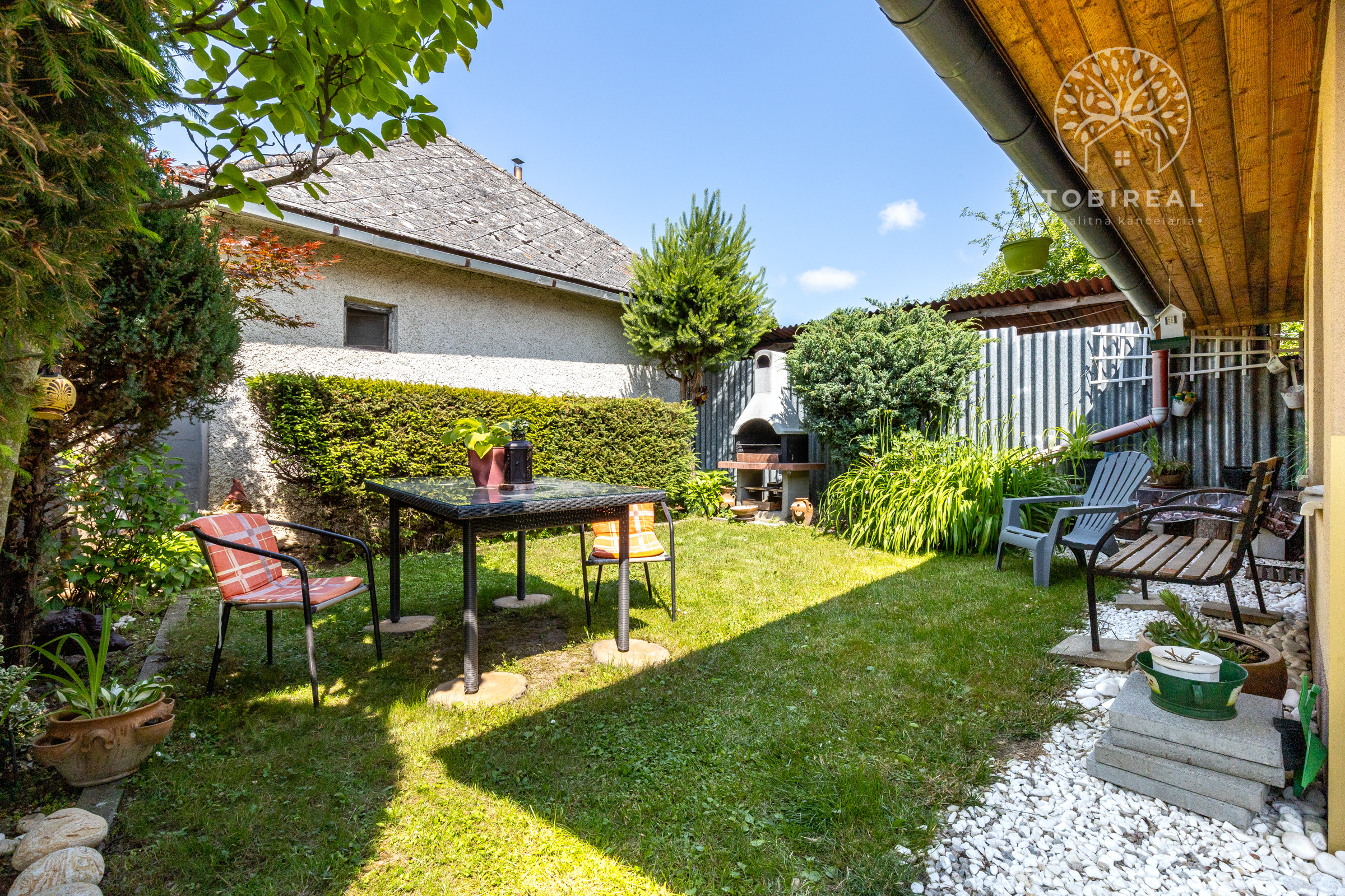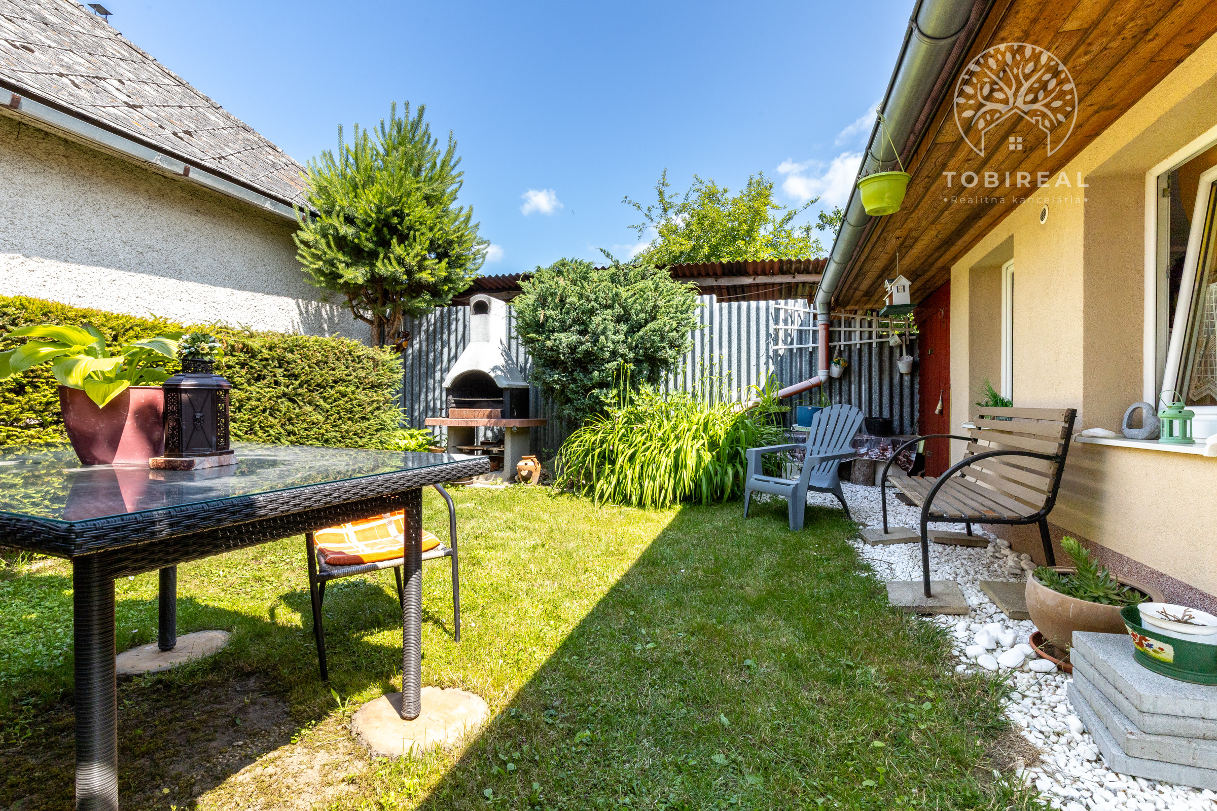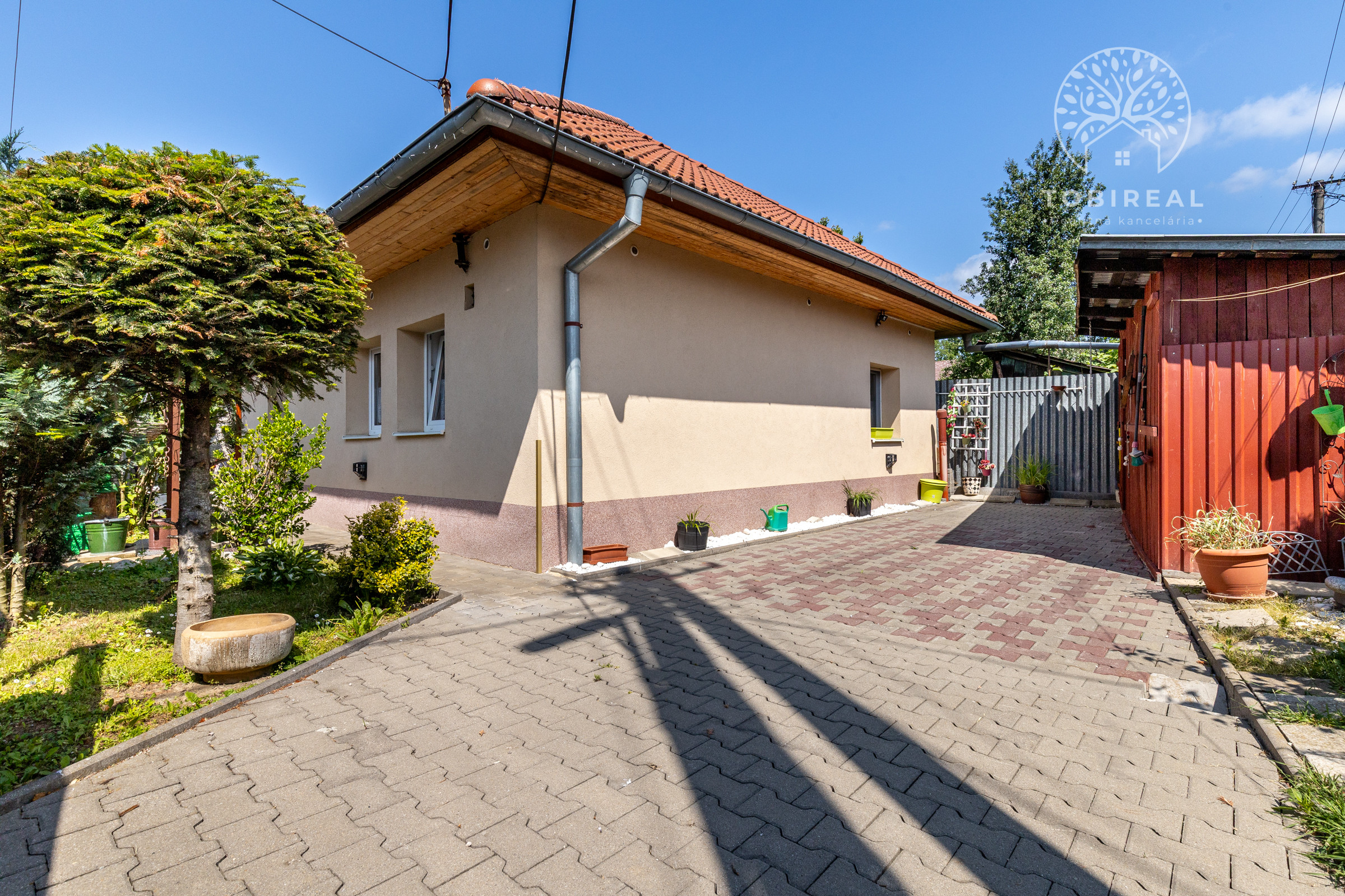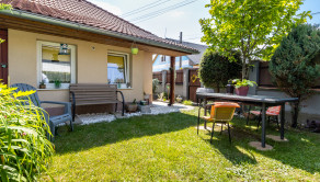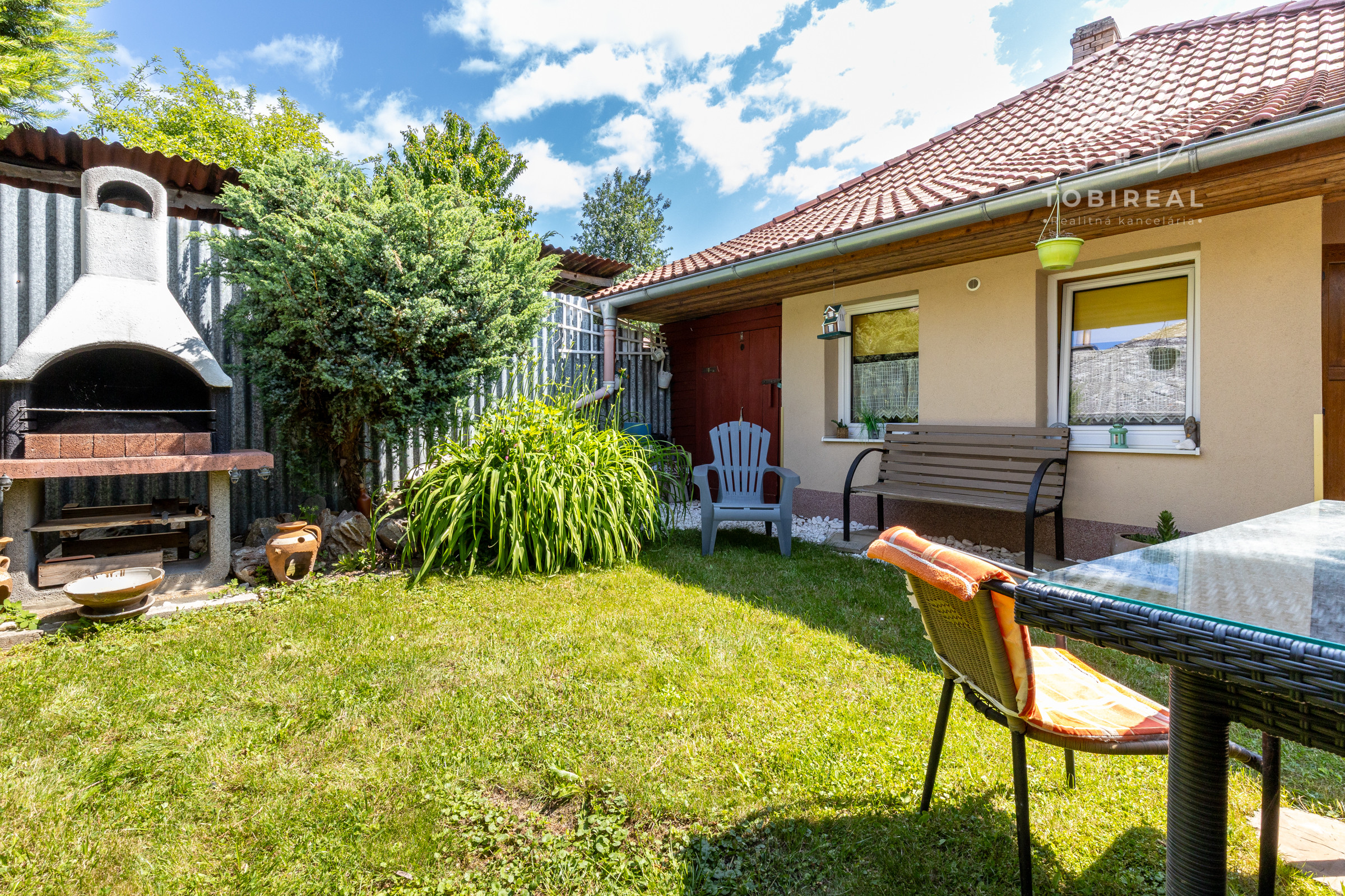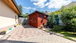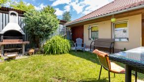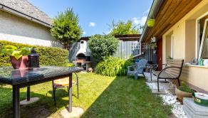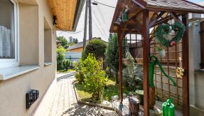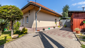 Dom je tehlový, zateplený, s ihlanovou strechou so škridlou a je postavený na rovinatom pozemku s výmerou 256 m², na ktorom nájdete sklad na náradie, záhradný murovaný gril. Exteriér domu pôsobí veľmi príjemne a udržiavane – je vkusne upravený, plný zelene, ktorá vytvára harmonické prostredie ideálne na oddych a relax.