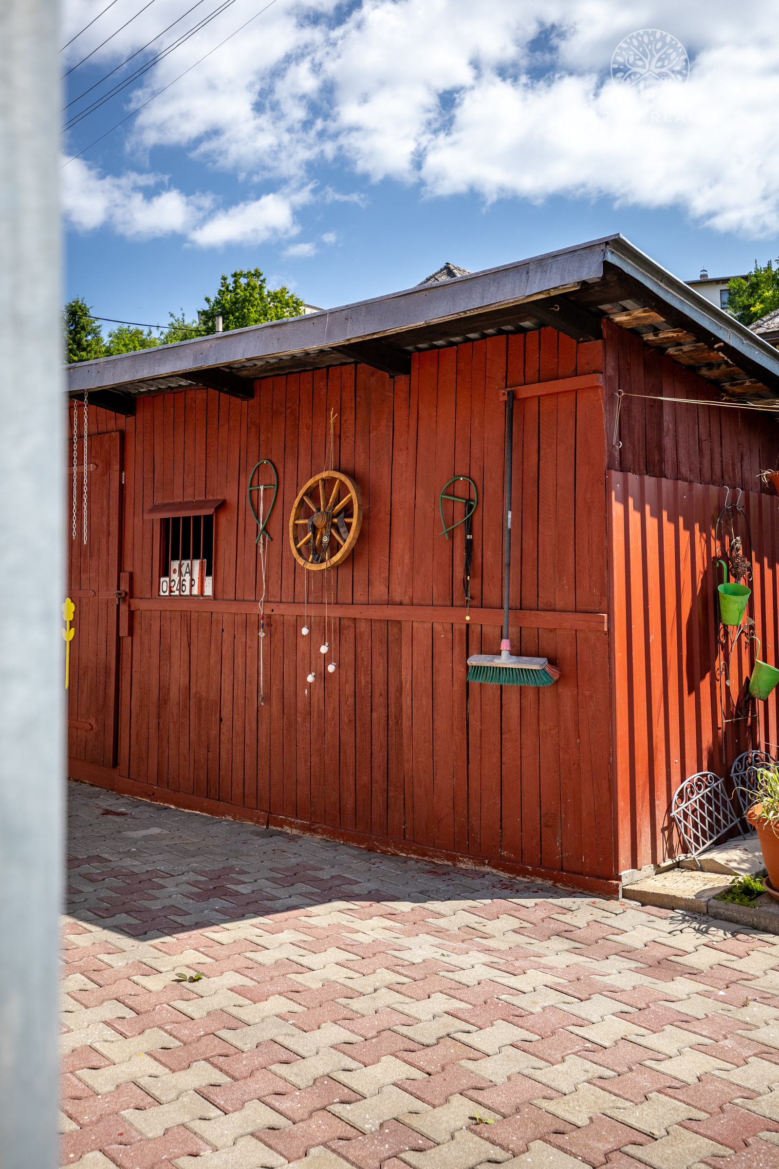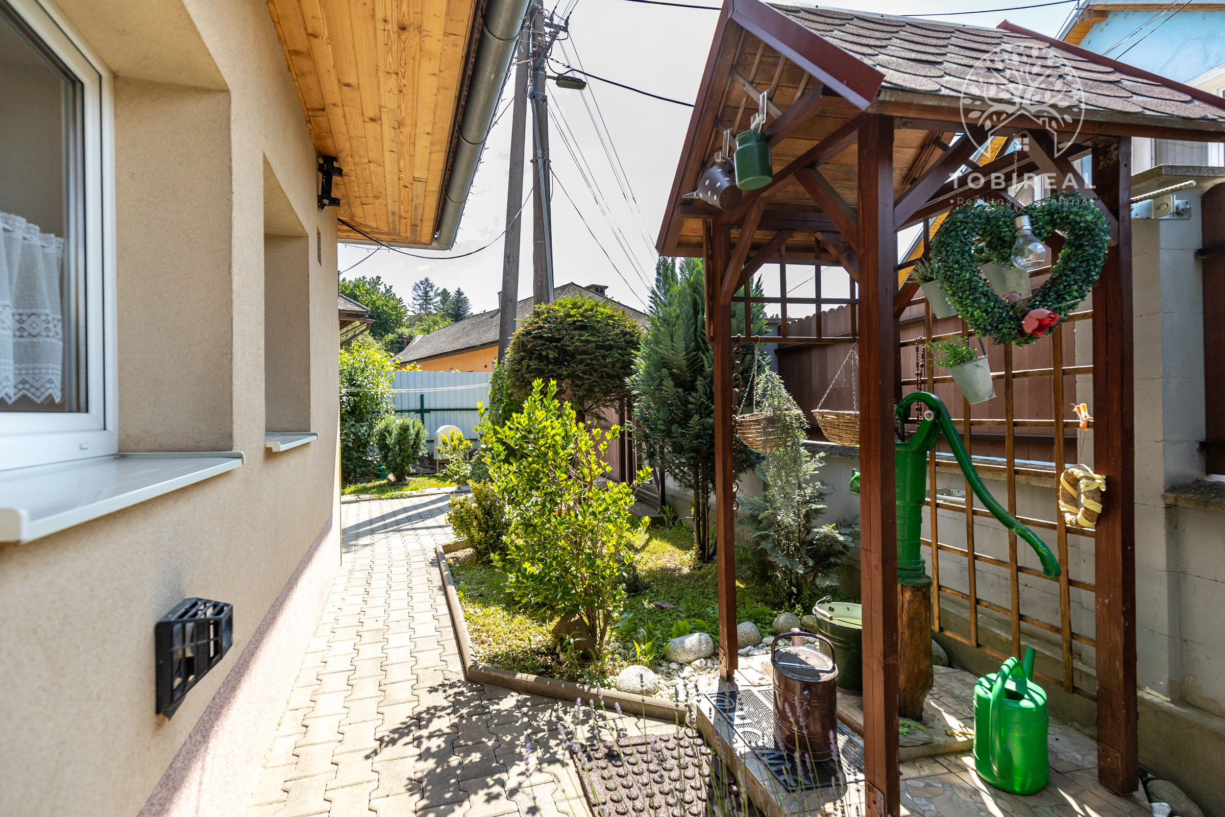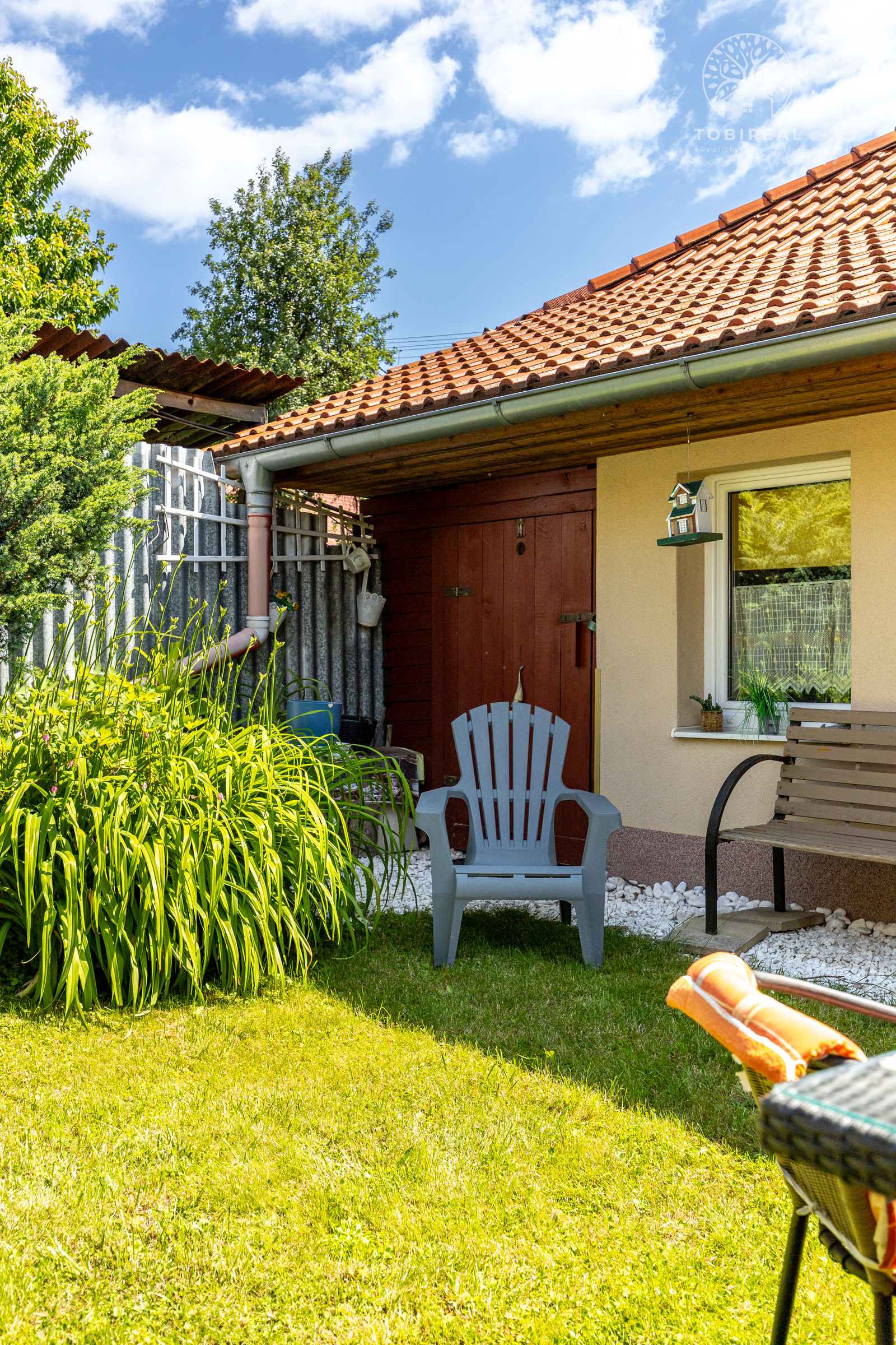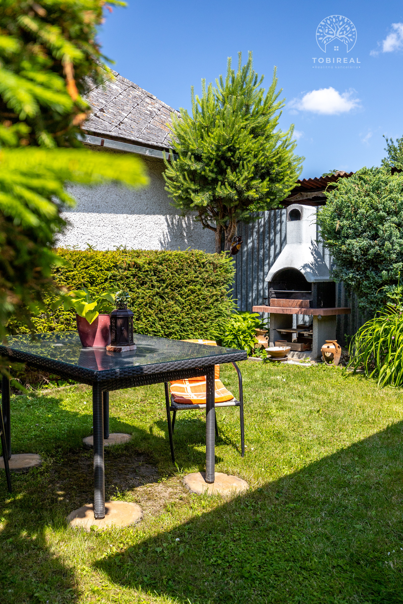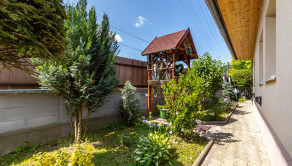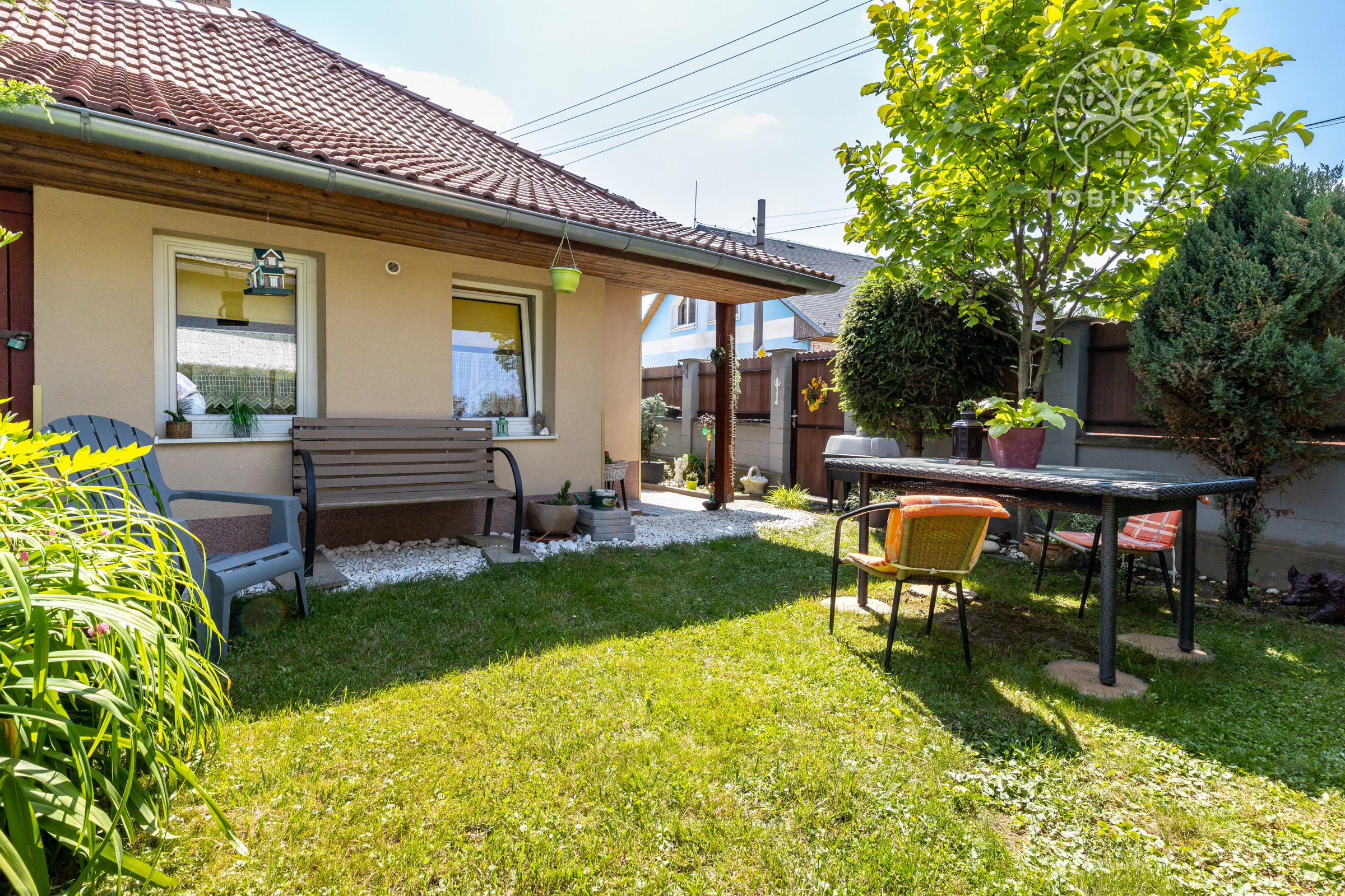 Dom je tehlový, zateplený, s ihlanovou strechou so škridlou a je postavený na rovinatom pozemku s výmerou 256 m², na ktorom nájdete sklad na náradie, záhradný murovaný gril. Exteriér domu pôsobí veľmi príjemne a udržiavane – je vkusne upravený, plný zelene, ktorá vytvára harmonické prostredie ideálne na oddych a relax.