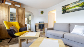 Interiér domu prešiel kompletnou rekonštrukciou. V celom dome sú plastové okná, plávajúca podlaha v kombinácií s keramickou dlažbou. Kúrenie je ústredné plynové a zároveň v izbách sú dve piecky na tuhé palivo a krb.