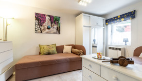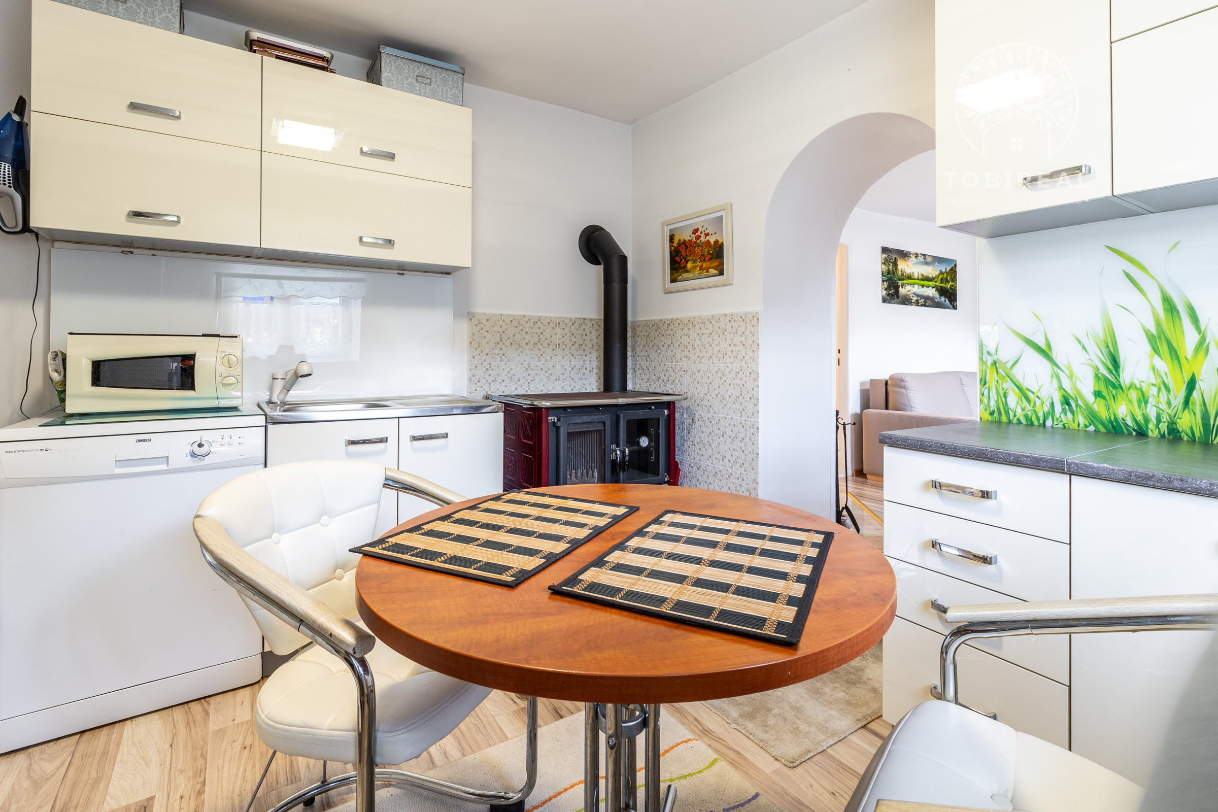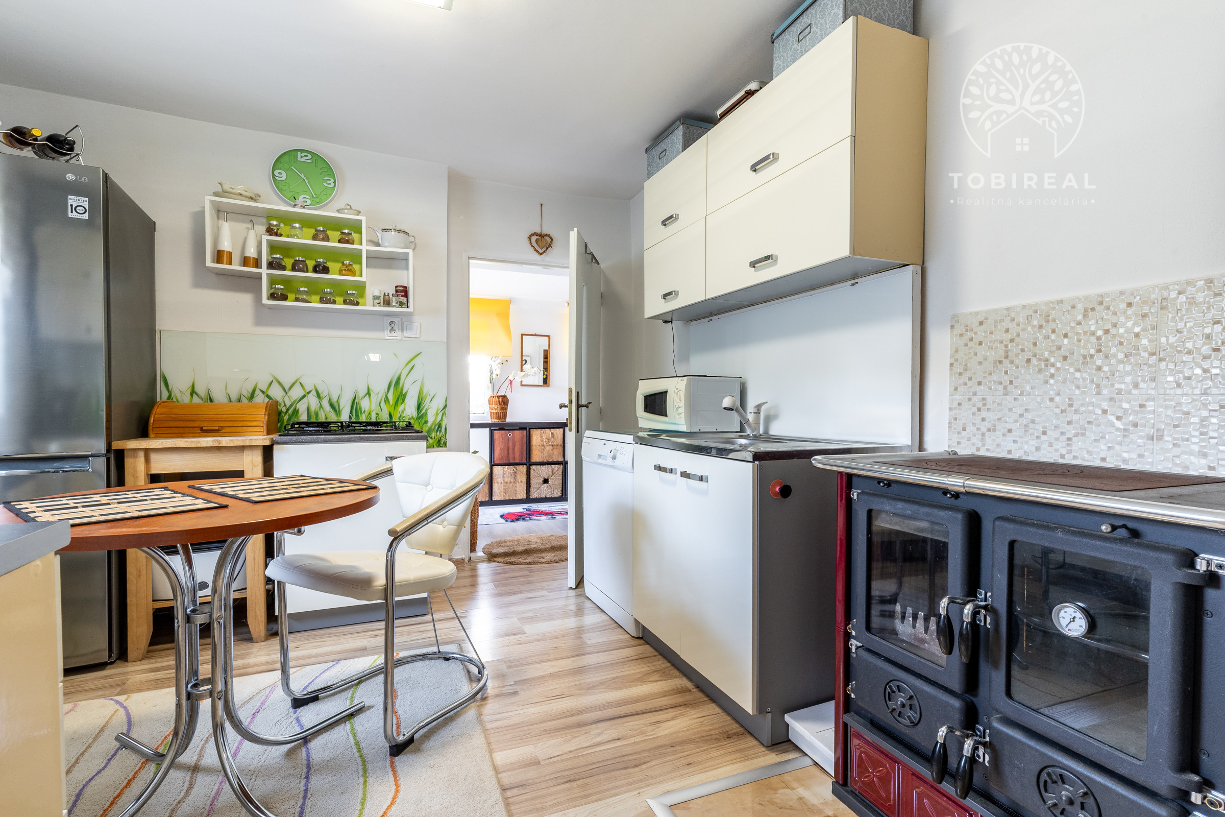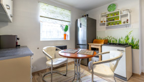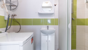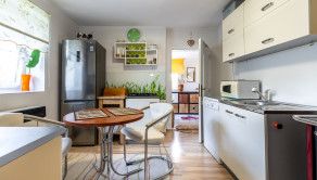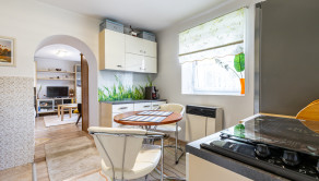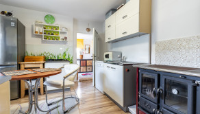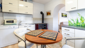 Kuchyňa je plne vybavená modernými spotrebičmi – k dispozícii je umývačka riadu, chladnička, mraznička, sporák, plynová varná doska, mikrovlnná rúra a zároveň sa v nej nachádza sporák na tuhé palivo. Kúpeľňa je so sprchovacím kútom.
