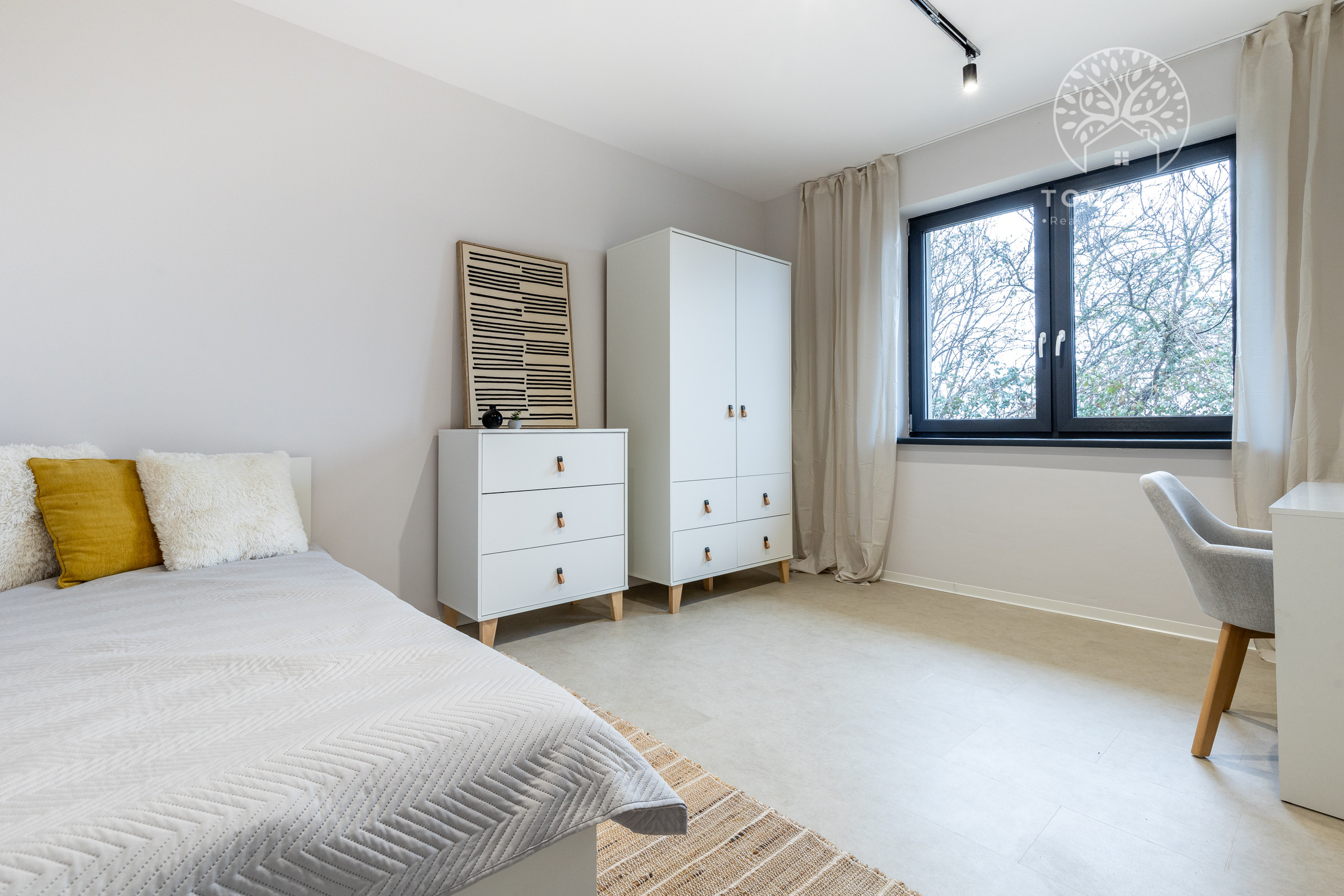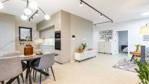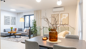 Kuchyňa je vybavená vstavanými spotrebičmi (umývačka riadu, chladnička s mrazničkou, indukčná varná doska, elektrická rúra a mikrovlnka). Samozrejmosťou je SMART klimatizácia a podlahové vykurovanie. V celom dome sú plastové 7 komorové okná s kompletnou predprípravou na vonkajšie žalúzie. Dom je ladený do príjemných jemných farieb, izby sú zariadené novým, moderným nábytkom, ktorý je súčasťou predaja.