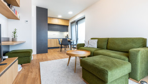 Byt je príjemne presvetlený vďaka veľkým oknám, ktoré do priestoru vpúšťajú dostatok denného svetla. Vzdušná dispozícia a moderný dizajn vytvárajú príjemnú atmosféru, v ktorej sa budete cítiť ako doma. Ideálny pre jednotlivcov alebo páry, ktorí hľadajú komfortné bývanie v tichej a atraktívnej lokalite s dobrou dostupnosťou.
