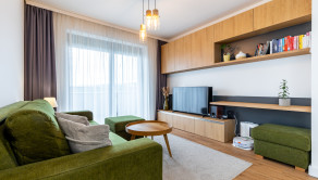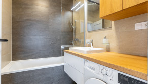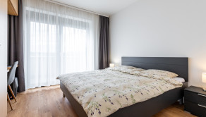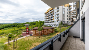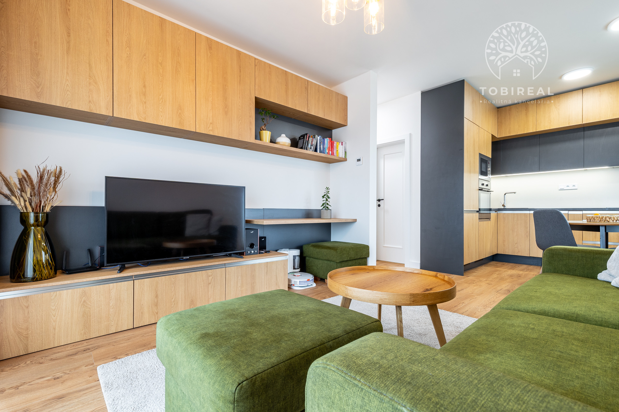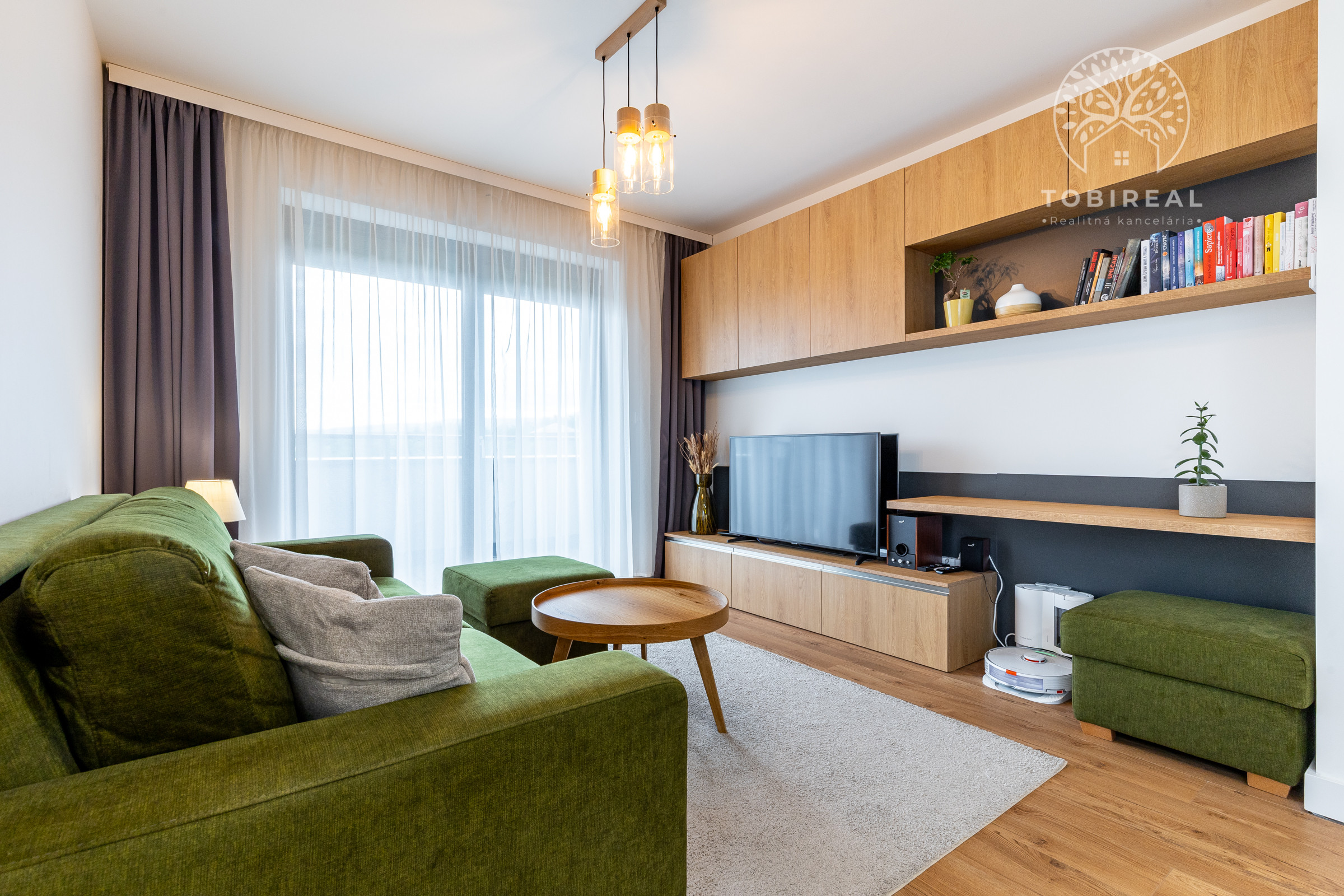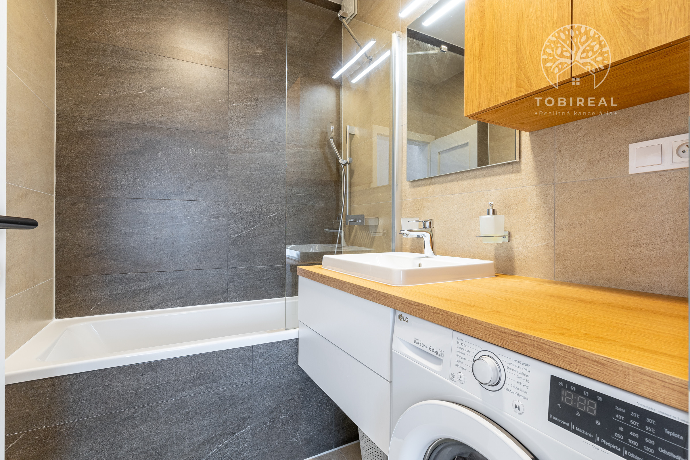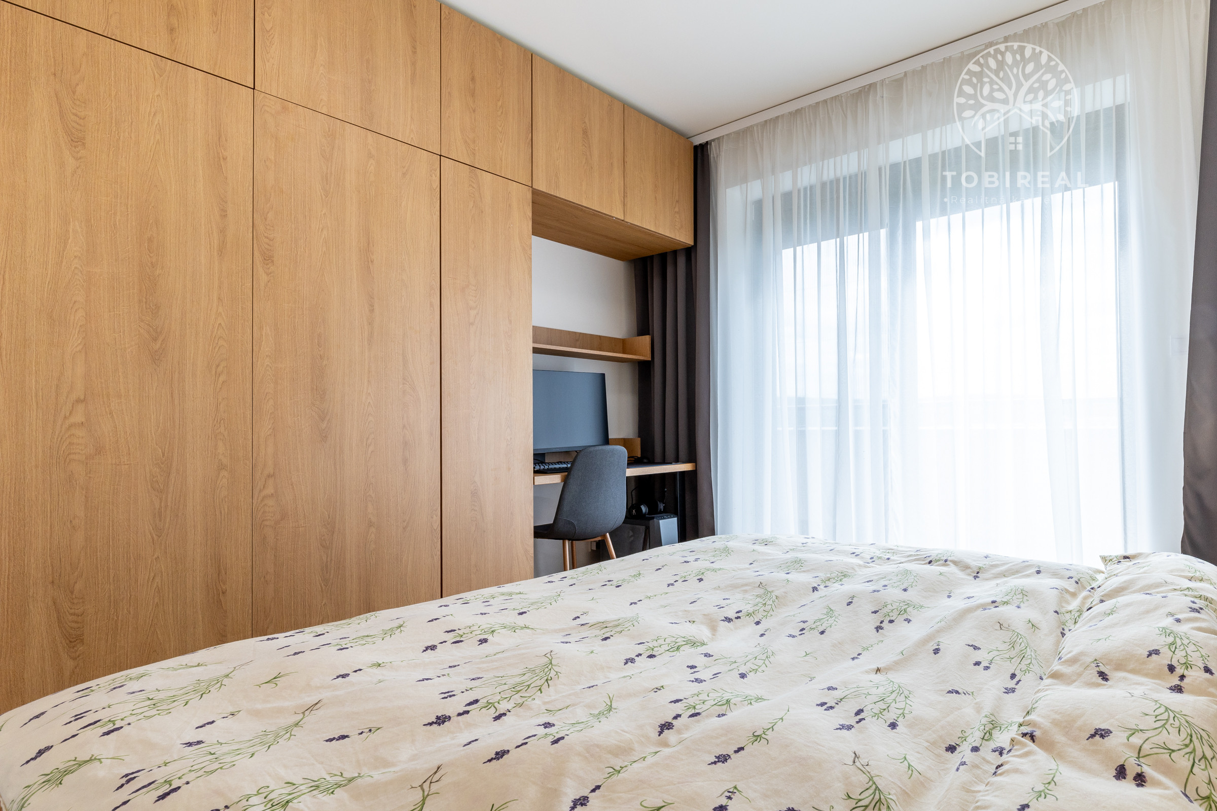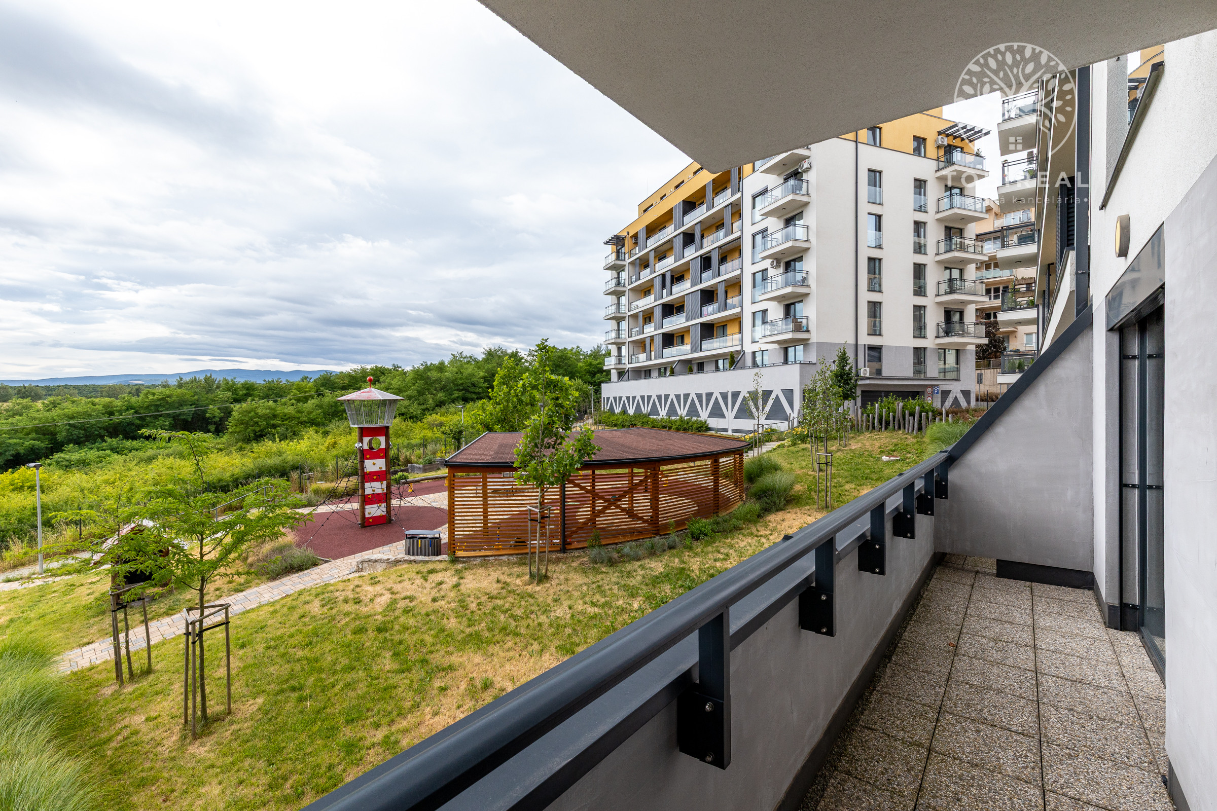 Tento krásny a moderne zariadený 2 izbový byt o rozlohe 48 m2 sa nachádza na vyvýšenom prízemí v bytovom dome s výťahom. Miestností v byte sú orientované do tichého parku smerom na juh a západ. Byt zaujme svojím moderným, minimalistickým štýlom, premysleným úložným riešením a veľkorysým presklením, ktoré zabezpečuje množstvo prirodzeného svetla. Z bytu sa naskytajú výnimočné výhľady a k nadštandardnému komfortu prispievajú aj vonkajšie žalúzie, ktoré zaisťujú súkromie a reguláciu svetla.