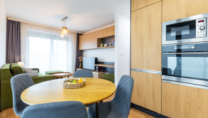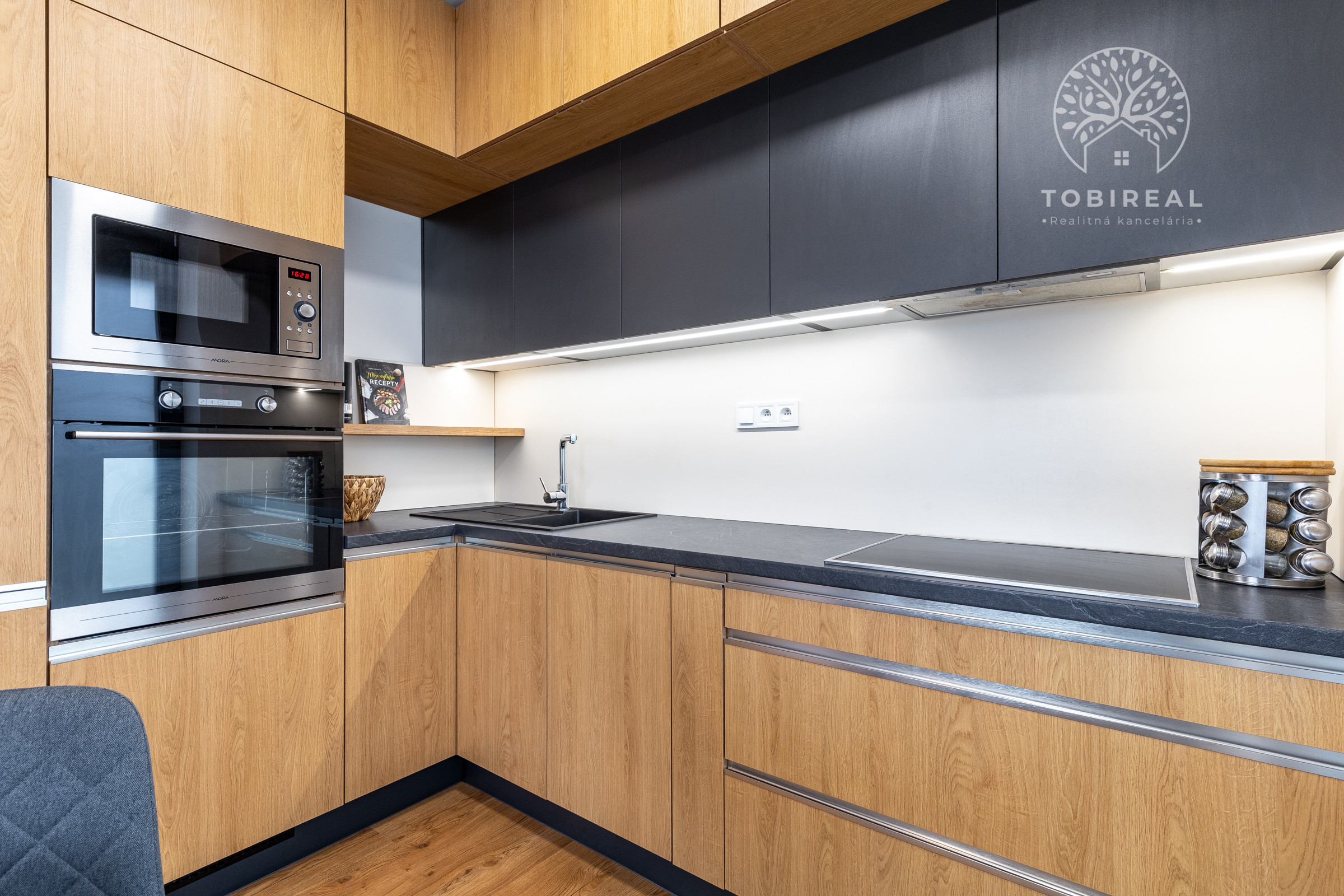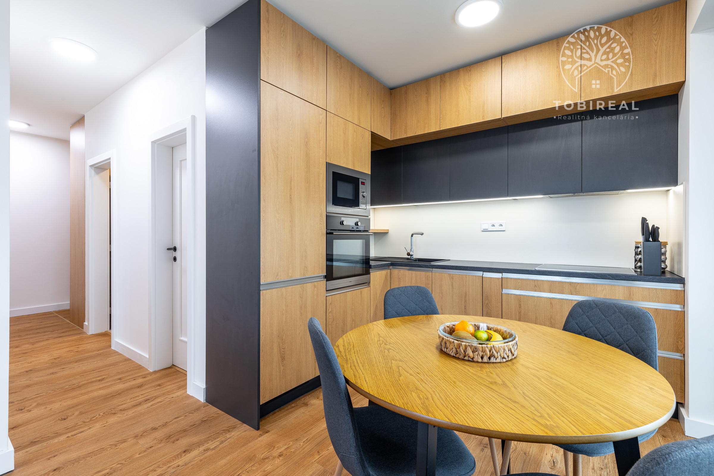 Byt sa prenajíma kompletne vybavený novým zariadením a disponuje všetkým, čo je k bývaniu potrebné. Kuchynská linka robená na mieru je vybavená zabudovanými spotrebičmi ako sú chladnička s mrazničkou, sporák, umývačka riadu, el. rúra, digestor a mikrovlnka. Z obývacej izby aj zo spálne je výstup na priestrannú loggiu.