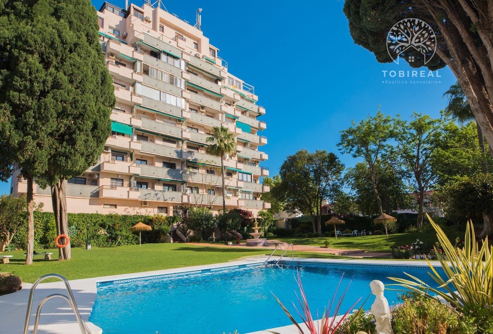 V dobre udržiavanom komplexe nájdete aj bazén obklopený zeleňou. Lokalita umožňuje pešiu dostupnosť pláže, supermarketov, reštaurácií, lekárskych služieb, lekární a dopravných spojení. Komunita povoľuje turistickú licenciu, čo robí apartmán vhodným na trvalé bývanie, dovolenkové útočisko alebo investíciu.