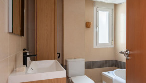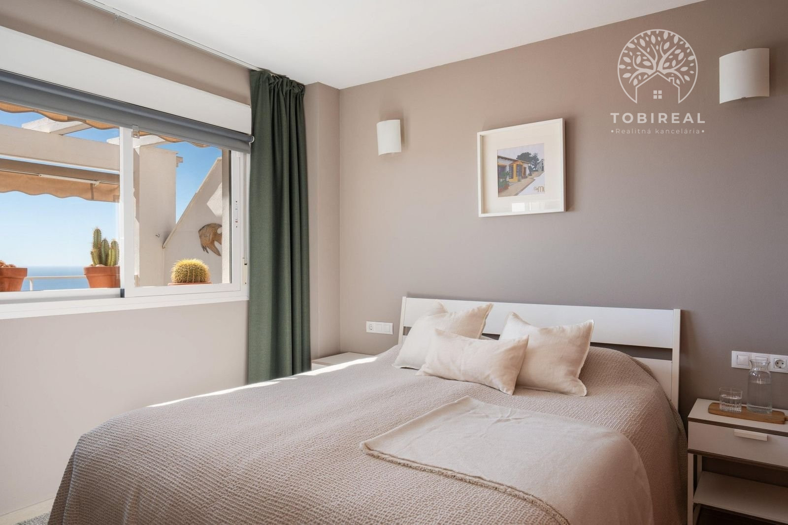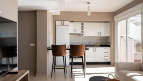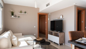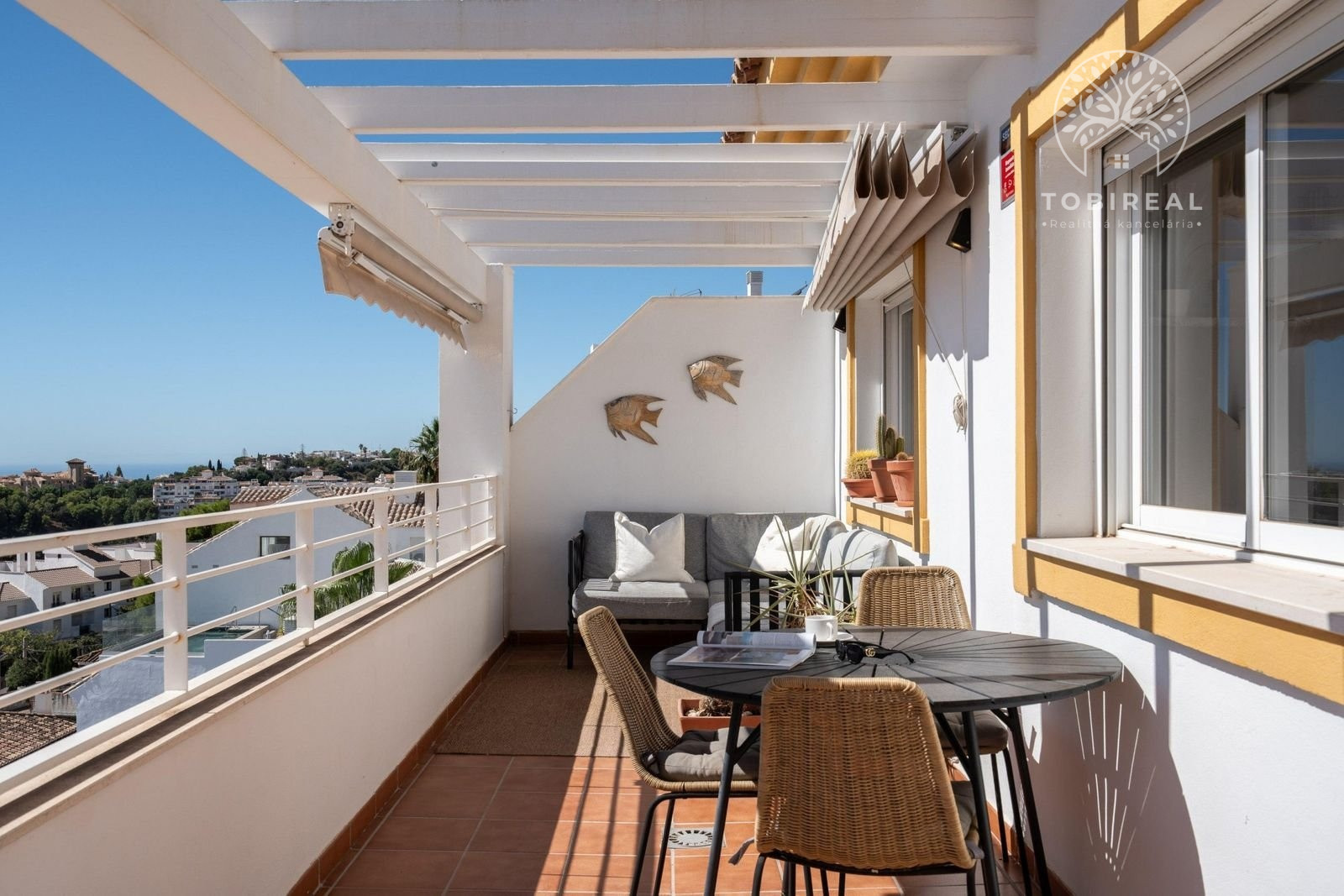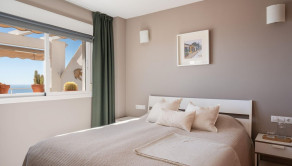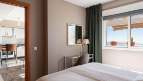 Nehnuteľnosť o rozlohe 52 m2 disponuje dvoma spálňami, modernou kúpeľňou s vírivkou a obývacou izbou s otvorenou kuchyňou, ktorá poskytuje priestor na pohodlné bývanie a zábavu. Najvýraznejším prvkom apartmánu je priestranná terasa s neopakovateľným výhľadom cez strechy na Stredozemné more. Terasa umožňuje vychutnávať si slnečné lúče po celý deň, pričom v horúcich mesiacoch poskytujú tieň markízy. Z hlavnej spálne sa takisto otvára krásny výhľad na more.