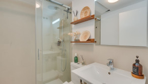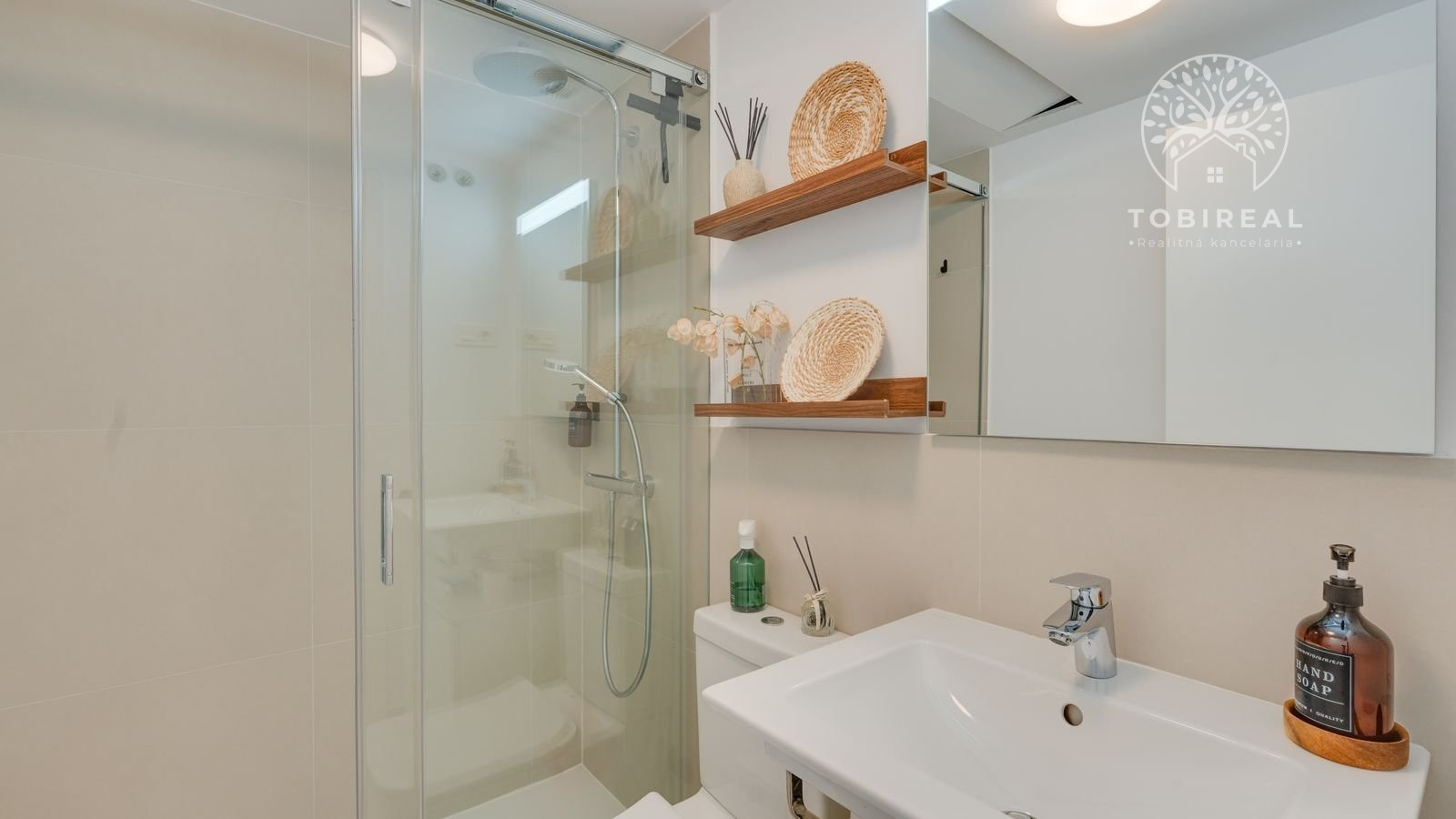 Spálňová časť je prehľadne usporiadaná a doplnená dvoma modernými kúpeľňami, pričom jedna z nich disponuje toaletou s funkciou bidetu. Celkový charakter nehnuteľnosti pôsobí svetlo, čisto a nadčasovo.