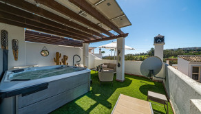 Jedinečným benefitom je 67 m² strešné solárium s úplne novou vírivkou pre 6 osôb a otvoreným panoramatickým výhľadom na golfové ihrisko, Stredozemné more a pohorie Sierra Bermeja.