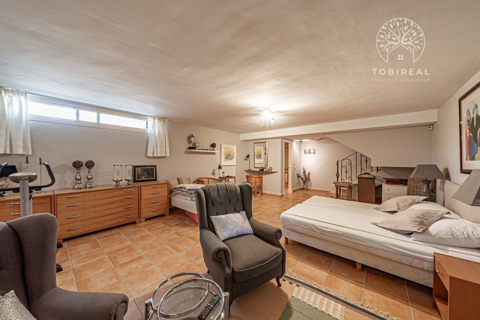 Súčasťou domu je aj polosuterén s rozlohou 60 m², ktorý ponúka flexibilné využitie napríklad ako herňa, posilňovňa alebo ďalšia spálňa. K nehnuteľnosti patrí súkromné parkovanie a obyvatelia majú k dispozícii spoločnú záhradu s bazénom.
