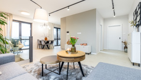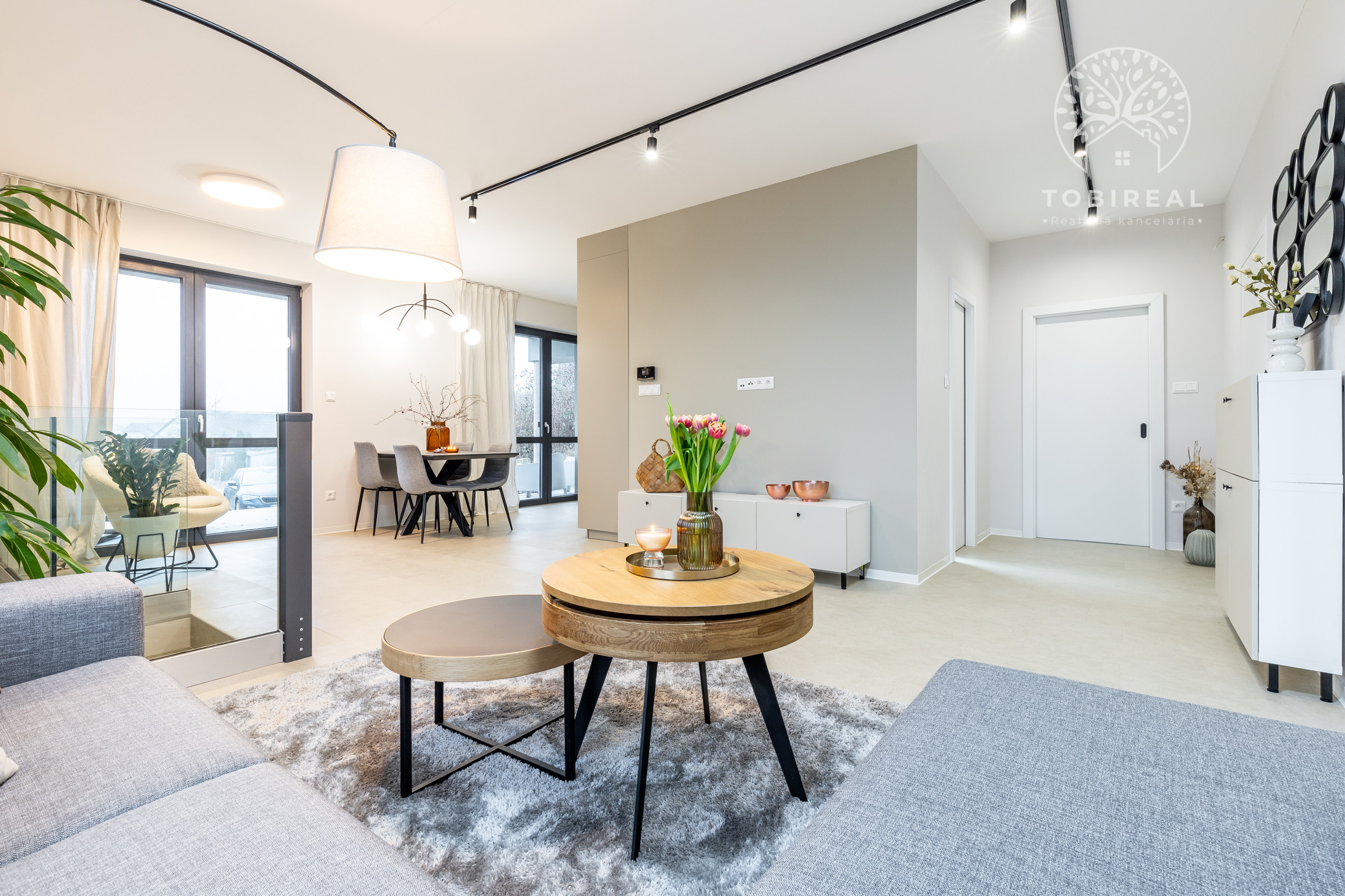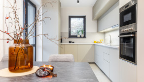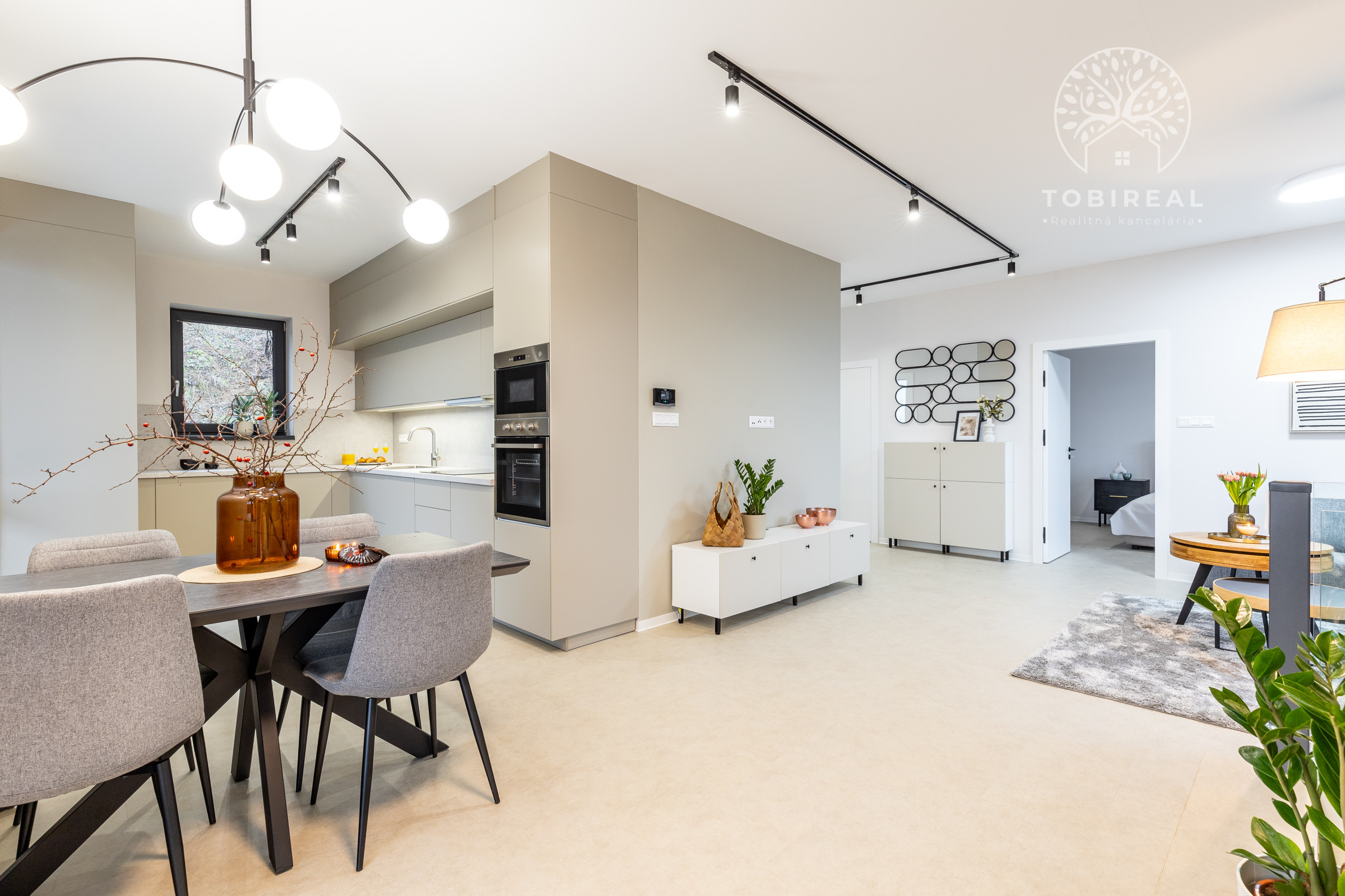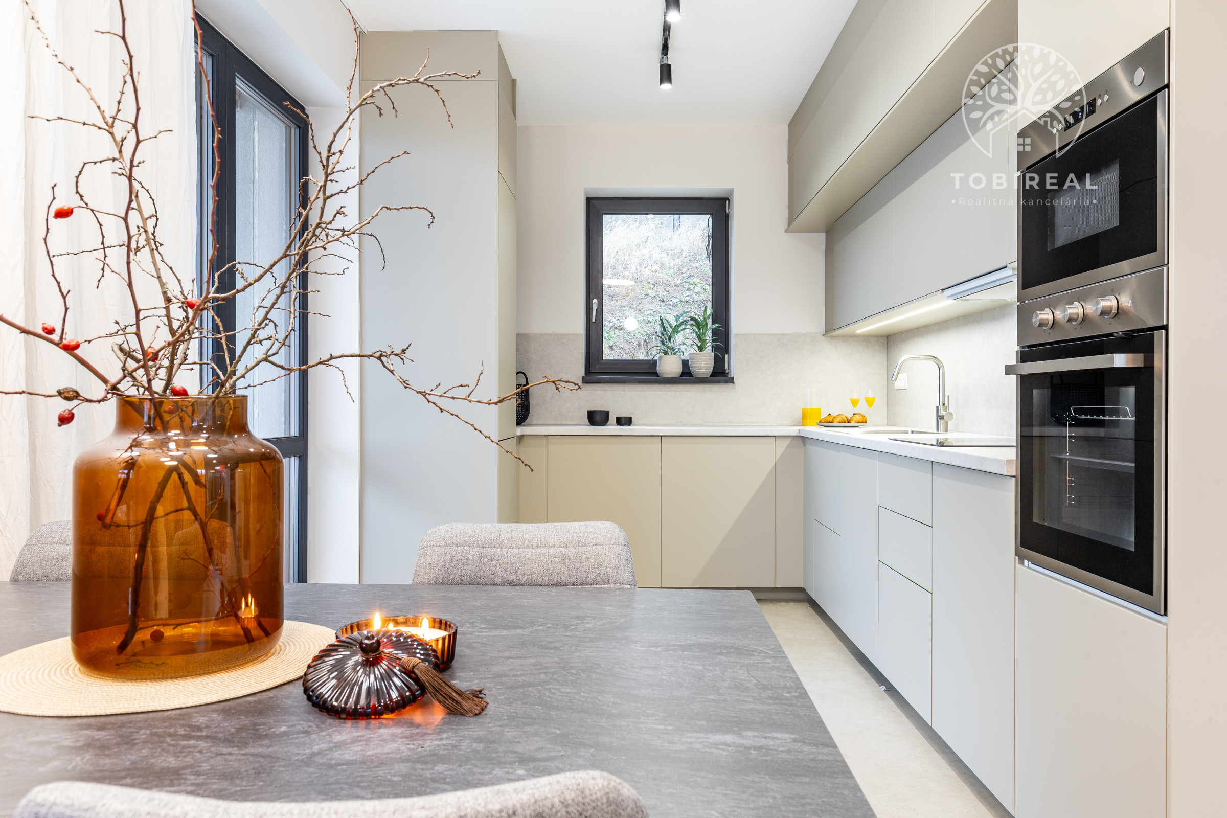 Kuchyňa je vybavená vstavanými spotrebičmi (umývačka riadu, chladnička s mrazničkou, indukčná varná doska, elektrická rúra a mikrovlnka). Samozrejmosťou je SMART klimatizácia a podlahové vykurovanie. V celom dome sú plastové 7 komorové okná s kompletnou predprípravou na vonkajšie žalúzie. Dom je ladený do príjemných jemných farieb, izby sú zariadené novým, moderným nábytkom, ktorý je súčasťou predaja.