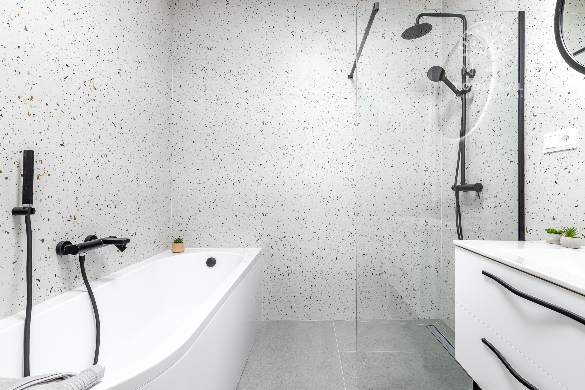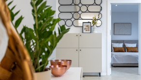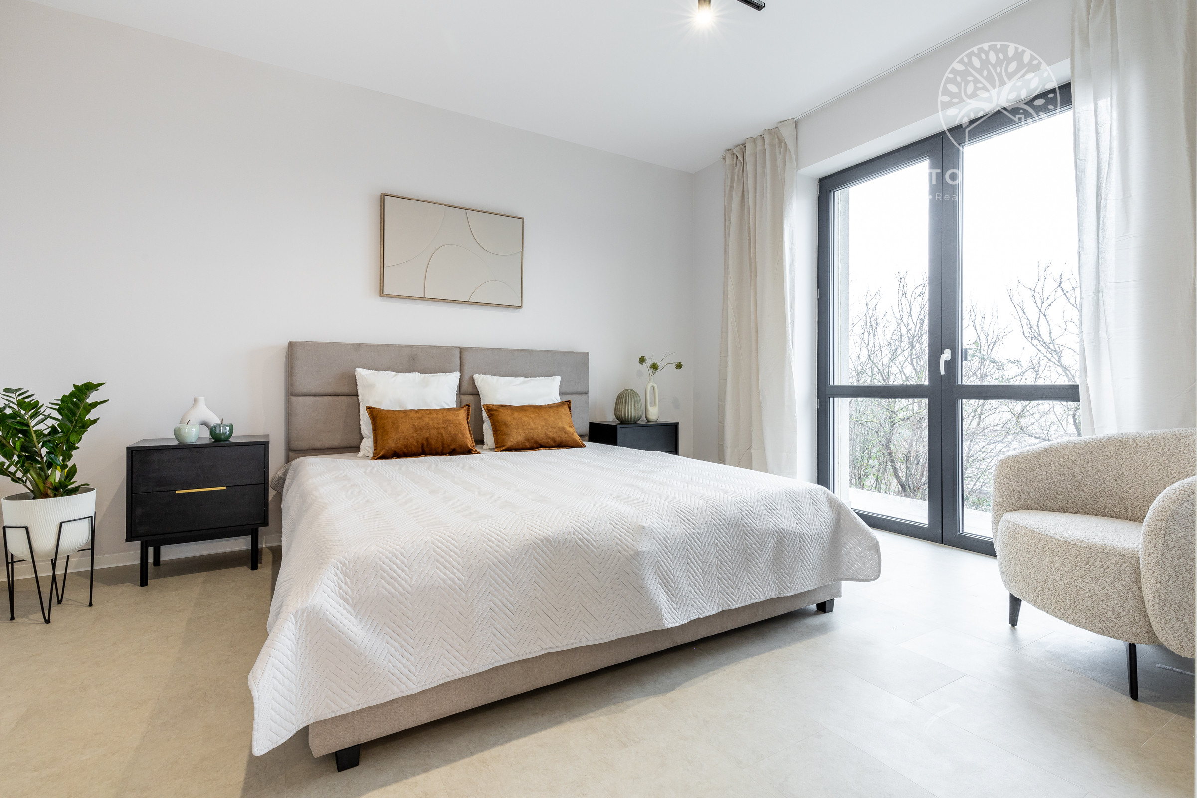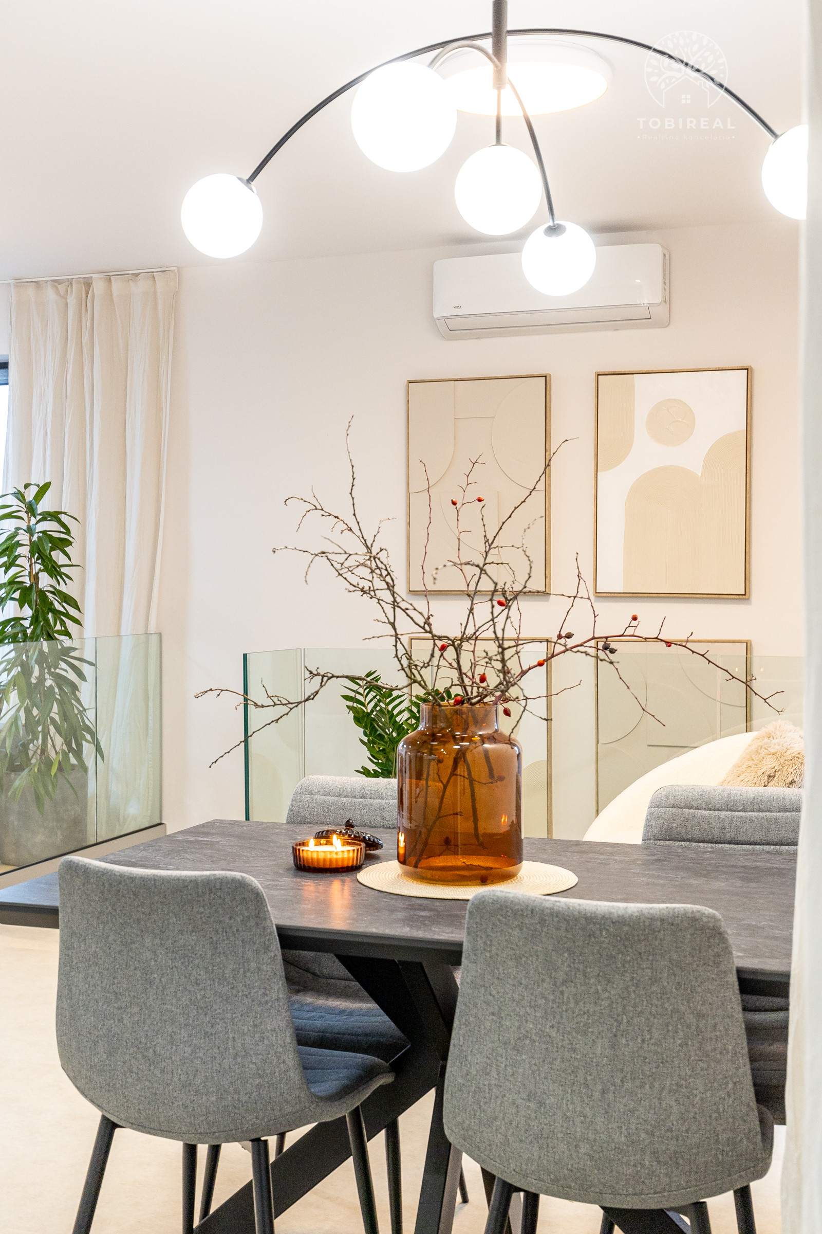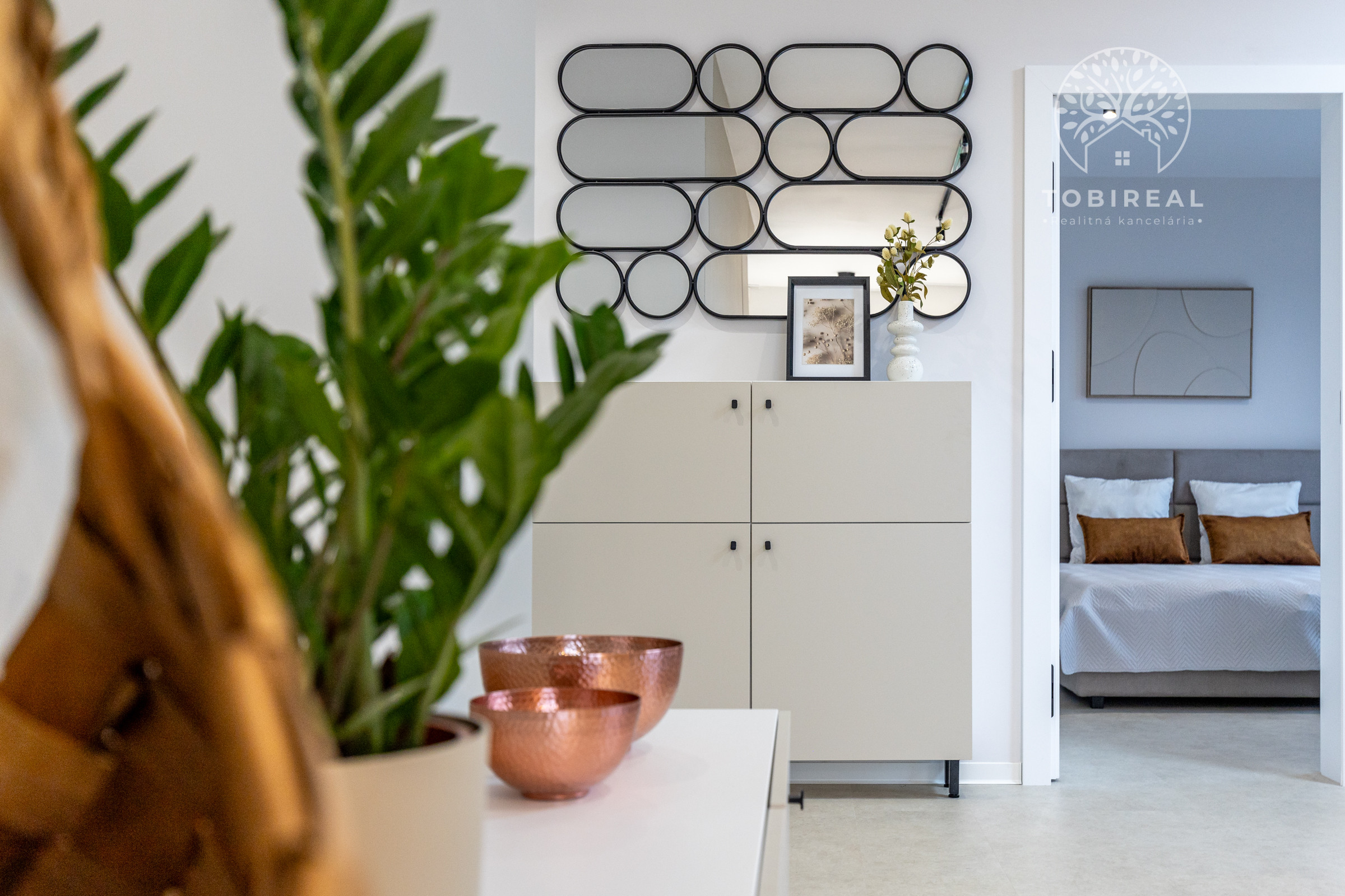 Kuchyňa je vybavená vstavanými spotrebičmi (umývačka riadu, chladnička s mrazničkou, indukčná varná doska, elektrická rúra a mikrovlnka). Samozrejmosťou je SMART klimatizácia a podlahové vykurovanie. V celom dome sú plastové 7 komorové okná s kompletnou predprípravou na vonkajšie žalúzie. Dom je ladený do príjemných jemných farieb, izby sú zariadené novým, moderným nábytkom, ktorý je súčasťou predaja.