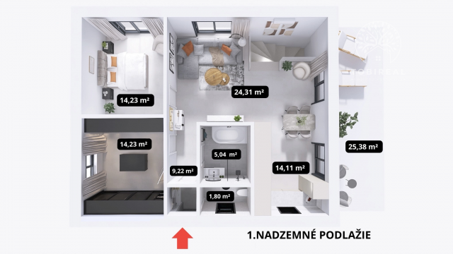 - prízemného podlažia, na ktorom nájdete: